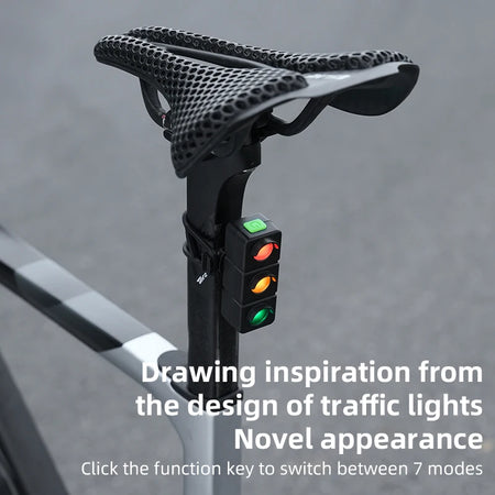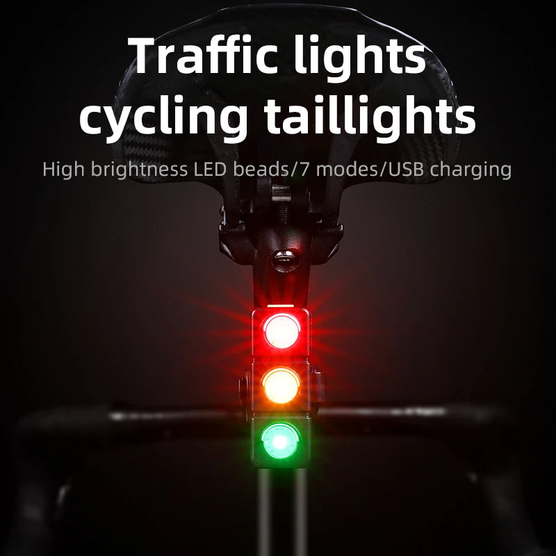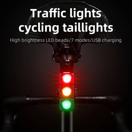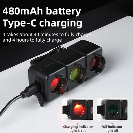 Maantiepyörän takavalo kolmen värin punainen, keltainen, vihreä, 450mAh akku