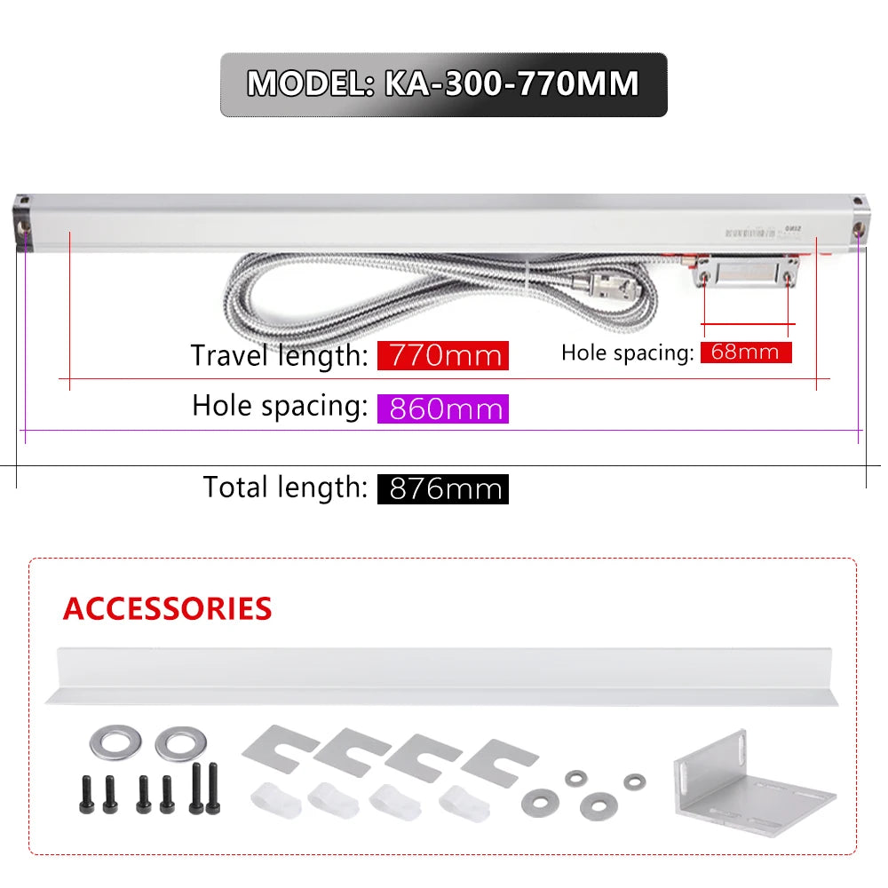 Päivitä koneistustyöskentelysi optisella ritiläanturilla KA-300, tarkkuus-DRO-anturi, joka on suunniteltu jyrsimille, sorveille, hiomakoneille ja CNC-sovelluksille. 0.005 mm (5 μm) resoluutiolla ja kestävässä 5V TTL -liitännässä tämä anturi tarjoaa luotettavaa, korkeaa tarkkuutta sijaintipalautetta laajalla työkaluasetusten valikoimalla. KA-300 käyttää 45 asteen vinoa ritilää erinomaisen signaalin vastaanoton saavuttamiseksi, vähentäen lukupään kulumista ja pidentäen käyttöikää verrattuna perinteisiin 90 asteen mittakaavoihin. Rakennettu suljetulla, vedenkestävällä ritiläanturilla ja monikerroksisella eristetyllä signaalijohdolla, se tarjoaa vankkaa suorituskykyä vaativissa työpajaolosuhteissa, pysyen samalla tarpeeksi kompaktina sopimaan tiukkoihin konekonfiguraatioihin.