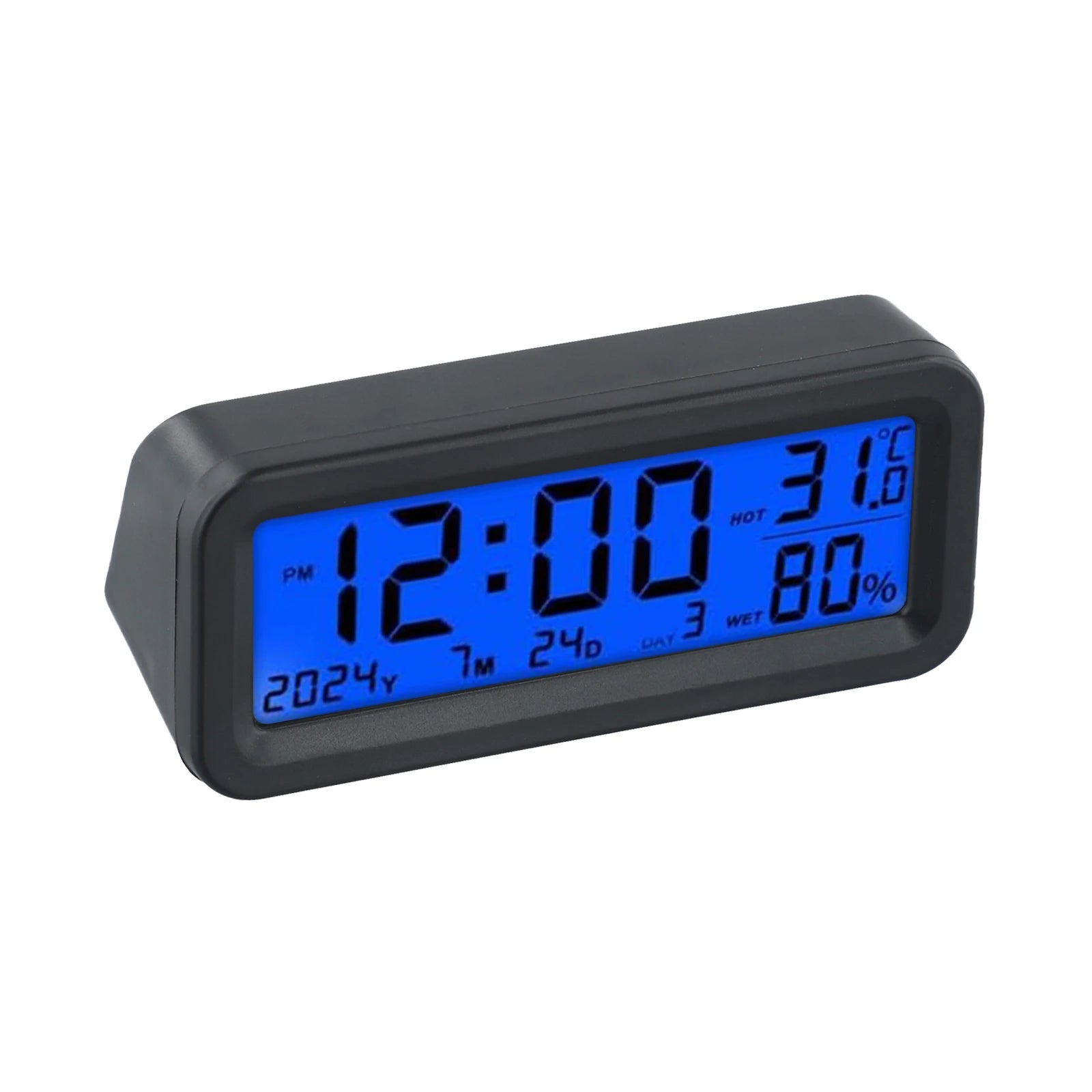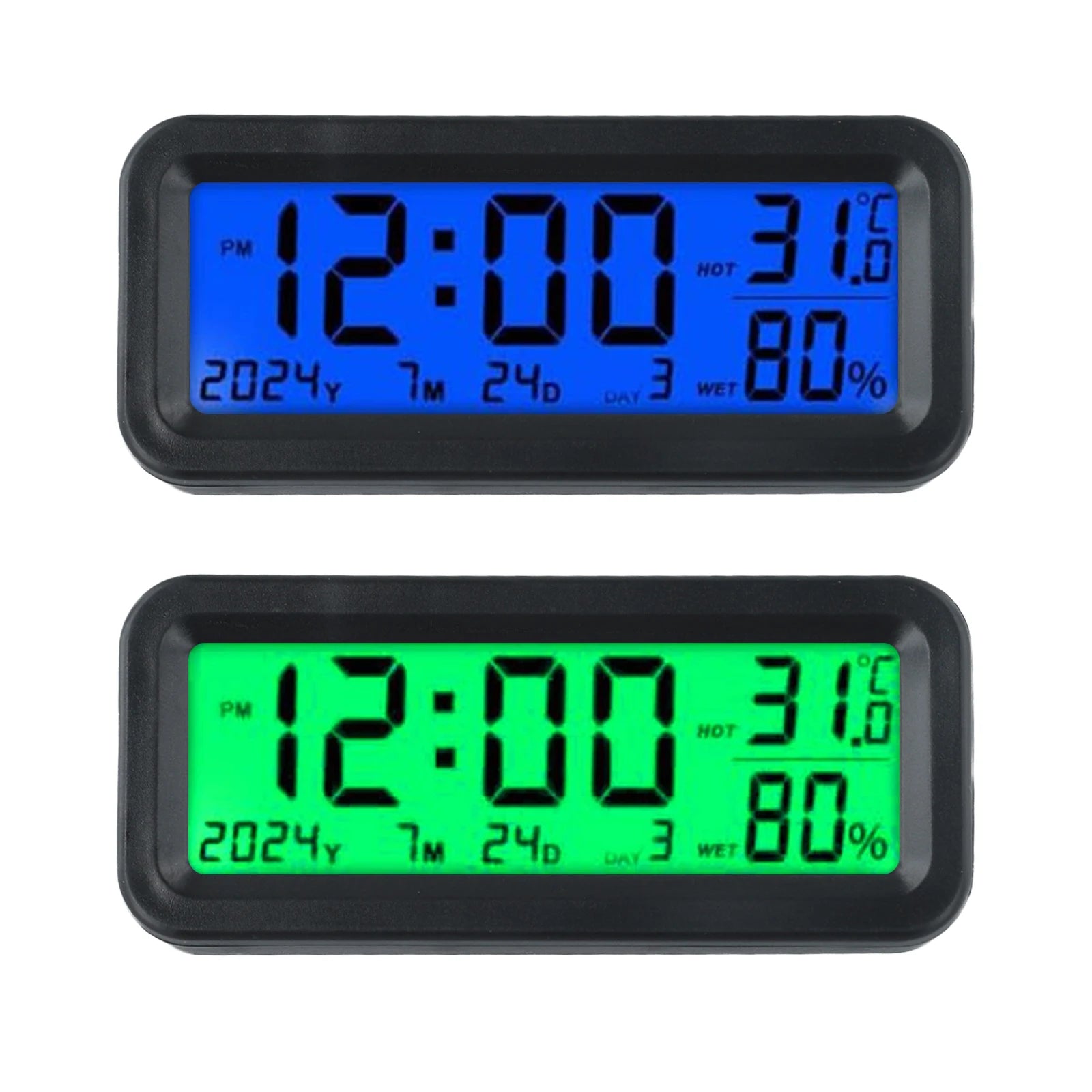 Aurinkoinen Mini Auto Kello Päivämäärällä ja Lämpötilalla, Sinivihreä ABS-näyttö