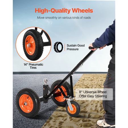 Tutustu 1000 LB / 1200 LB Kieli Dolly Hiiliteräs Veneen Siirtäjään—kestävä, monipuolinen perävaunudolly, joka on suunniteltu helpottamaan veneiden, perävaunujen ja laitteiden siirtämistä pihoilla, ajoteillä tai varastotiloissa. Valmistettu korkealaatuisesta hiiliteräksestä, jossa on ruosteenkestävä jauhemaalipinta, tämä siirtäjä tarjoaa luotettavuutta ulko-olosuhteissa ja raskassa käytössä. 14-tuumaiset ilmatäytteiset renkaat rullaavat sujuvasti nurmikon, soran ja asfaltin yli, kun taas universaali 2-tuumainen pallo sopii useimpiin koukkuihin nopeaa liittämistä varten. Säädettävän kielen korkeuden ja leveän akselivälin ansiosta se tarjoaa vakaata hallintaa rinteiden ja ahtaiden paikkojen navigoinnissa. Olitpa siirtämässä pientä hyötyperävaunua tai keskikokoista veneperävaunua, tämä dolly tekee tehtävästä turvallisempaa ja vähemmän rasittavaa.