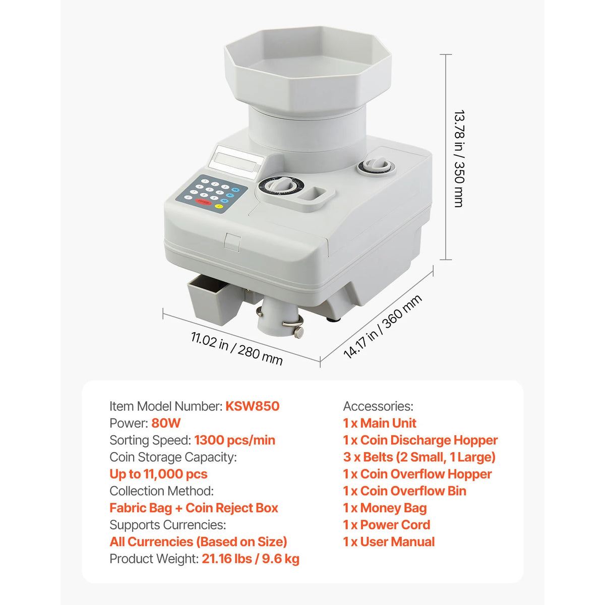 Suunniteltu kiireisiin ympäristöihin, kuten vähittäismyyntitiskeille, kolikkopankkeihin ja kolikkoautomaatteihin, tämä lajittelija nopeuttaa lajittelutehtäviä ja vähentää laskentavirheitä. CE-sertifiointi merkitsee turvallisuutta ja laatua, jota tukee luotettava brändi. Huomaa, että paristoa ei ole mukana, sillä laite on tarkoitettu toimimaan valitsemallasi virtalähteellä.