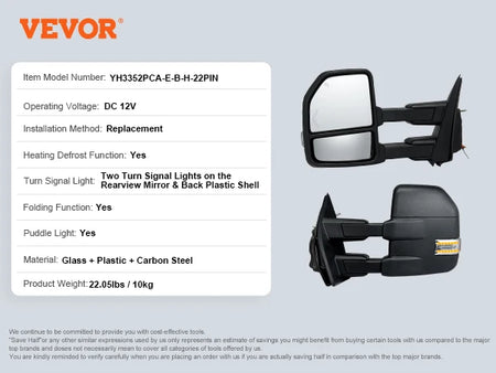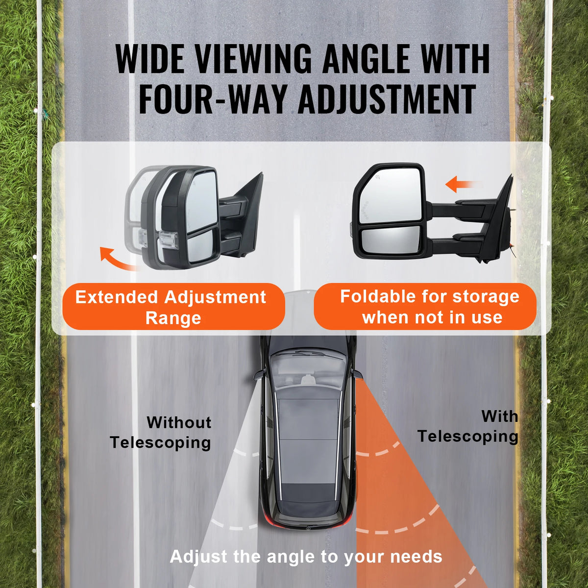 - Kaiken sään luotettavuus—lämmitys pitää peilin sumuttomana ja jäätymättömänä kirkasta näkyvyyttä varten sateessa, lumessa tai sumussa.
