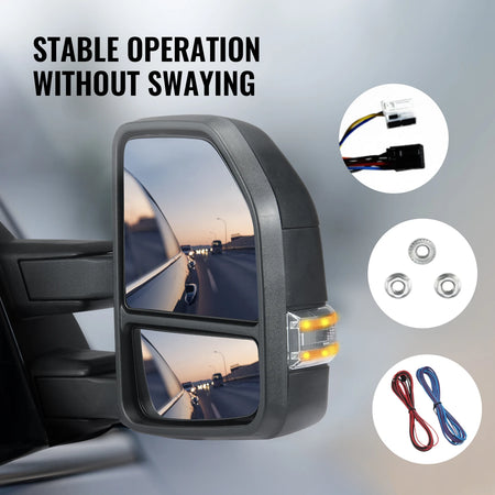 Päivitä Ford F-150:si perävaunukameralla, jossa on signaalivalo, 2015–2018 malleille. Tämä lämmitettävä perävaunukamera on suunniteltu korvaamaan tai täydentämään tehdaspeiliäsi, tarjoten terävän ja kirkkaan näkymän taaksesi raskaita kuormia vetäessäsi. Tiukasti OEM-tyylin mukaisesti istuva, nelisuuntainen säätö ja taitettava muotoilu tekevät ajamisesta turvallisempaa ja itsevarmempaa niin moottoriteillä kuin ahtaissakin tiloissa. Täydellinen valaistuspaketti lisää vilkkuvalot ja lätäkkövalot parantaakseen näkyvyyttä, kun taas lämmitystoiminto pitää lasin kirkkaana sateessa, lumessa tai sumussa, tarjoten luotettavan takanäkymän. Helppo asentaa liittämällä ajoneuvosi DC 12V virtalähteeseen, tämä peilisarja muuttaa jokapäiväisen ajon turvallisemmaksi ja mukavammaksi kokemukseksi.