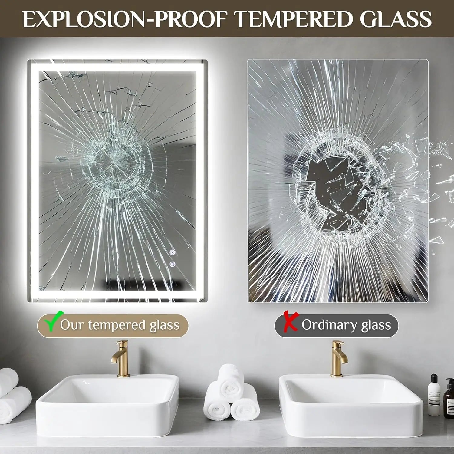 4 mm karkaistu lasi tarjoaa räjähdyssuojan, pitäen lasin sirpaleet sisällä iskun sattuessa lisäsuojaksi perheelle. Älykäs kosketuskytkin tarjoaa himmennettävää kirkkaus ja muistitoiminnon, joka palauttaa viimeiset asetuksesi—ei tarvitse säätää joka kerta, kun käytät sitä. Sisäänrakennettu huurteenestojärjestelmä pitää heijastuksesi kristallinkirkkaana suihkujen jälkeen, aktivoituu 5–10 minuutissa ja sammuu automaattisesti noin 60 minuutin kuluttua energian säästämiseksi. Peili tukee joustavaa asennusta joko vaakasuorassa tai pystysuorassa asennossa, kiitos V-muotoisen ripustuksen, joka helpottaa kiinnittämistä mihin tahansa kylpyhuoneen tyyliin.