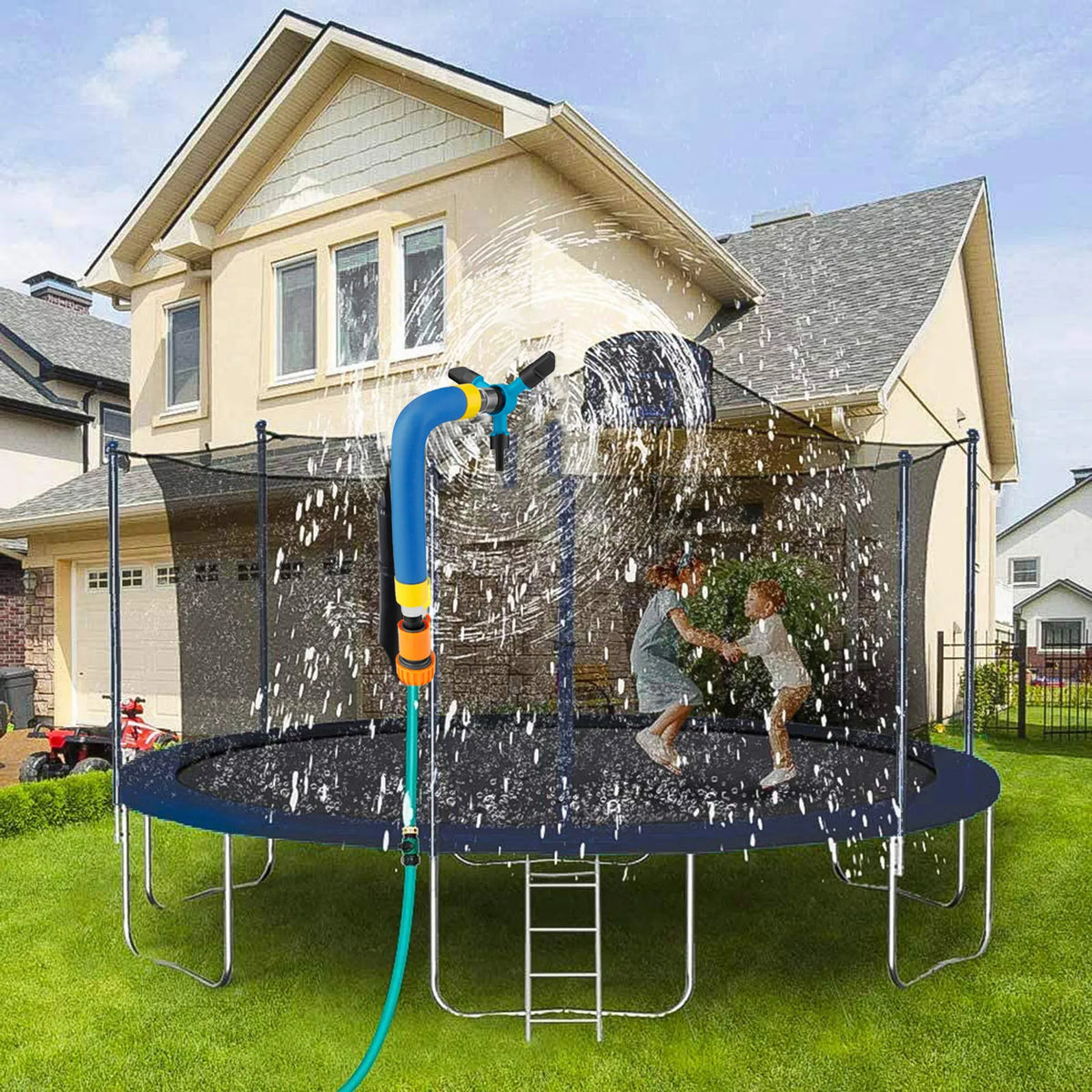 - Monipuolinen leikki ja viilennys: Käytä trampoliinilla pitämään lapset mukavina kuumina päivinä, tai käytä sitä puutarhasuihkuna nurmikon ja pihan hauskuuteen.