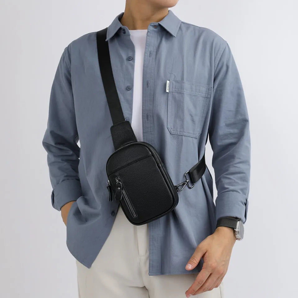Tutustu VanderwaHCN:n aitoon naudanlihasta valmistettuun unisex-rintareppuun—vaivattoman tyylikäs ja monipuolinen olkalaukku, joka sopii sekä miehille että naisille. Valmistettu aidosta naudanlihasta ja kestävästä polyesterivuoresta, tämä kompakti laukku yhdistää ammattimaisen vetovoiman käytännölliseen päivittäiseen käyttöön. Vankka, minimalistinen ulkopinta sisältää turvallisen vetoketjukiinnityksen ja läppämuotoilun, joka pitää tärkeät tavarasi turvassa samalla kun se säilyttää siistin ilmeen liiketoiminnassa ja matkustamisessa.