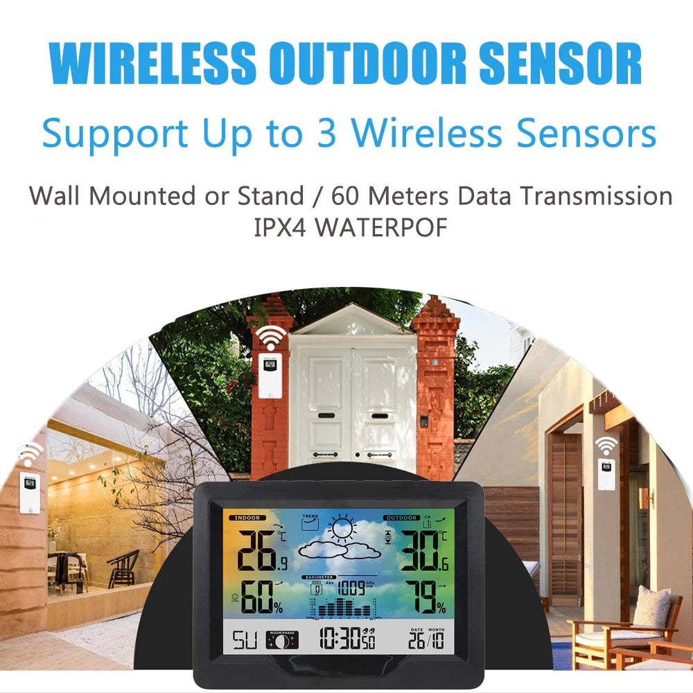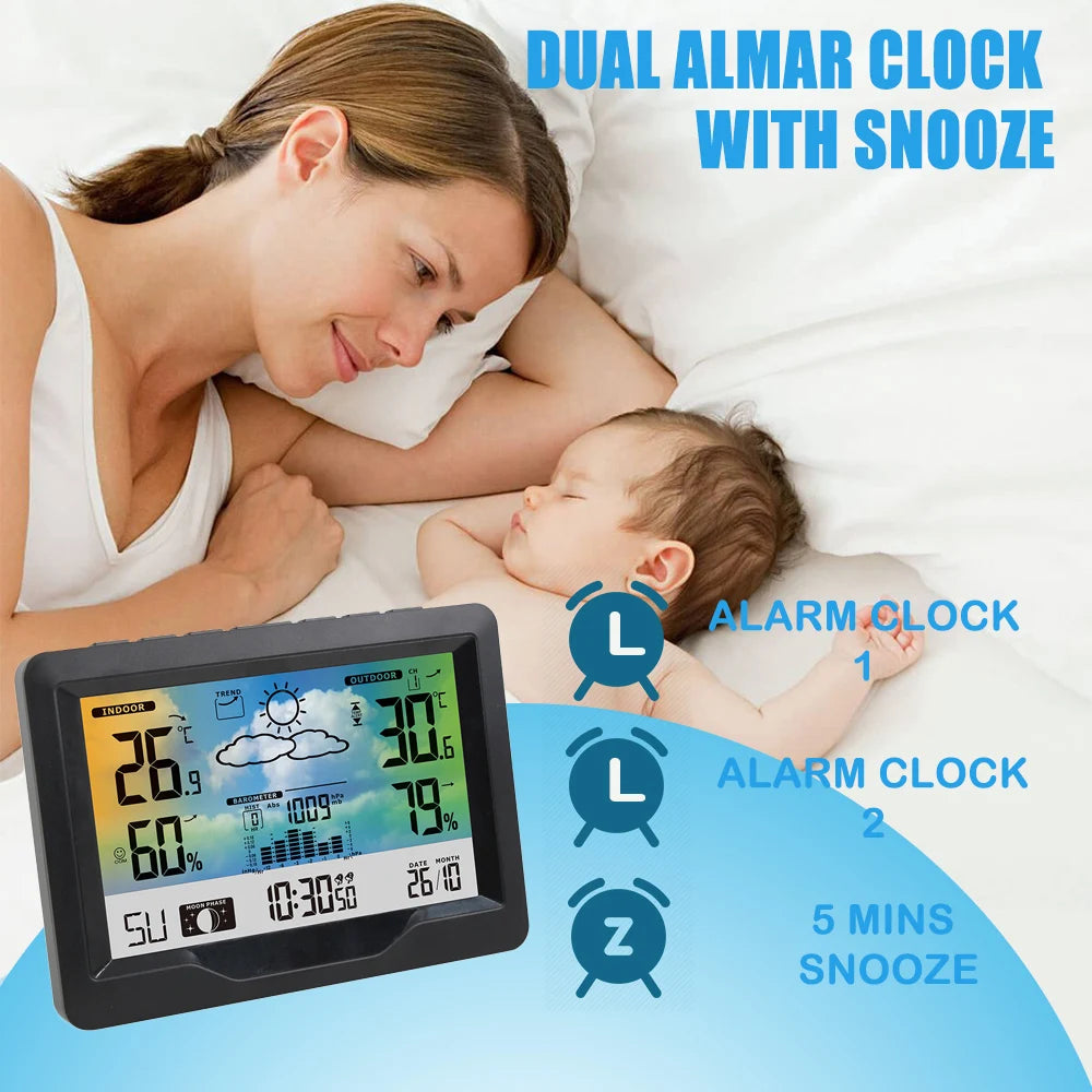 - Älykäs näyttö, joustava asennus: Seinälle tai pöydälle suunniteltu malli, Celsius/Fahrenheit-kytkin, paineyksiköt mb/hPa tai inHg, ja 5-kielinen viikkonäyttö helppoa lukemista varten valitsemassasi kielessä.