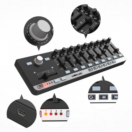 Worlde EasyControl 9 USB MIDI-ohjain 9 säätönuppia liukusäätimiä