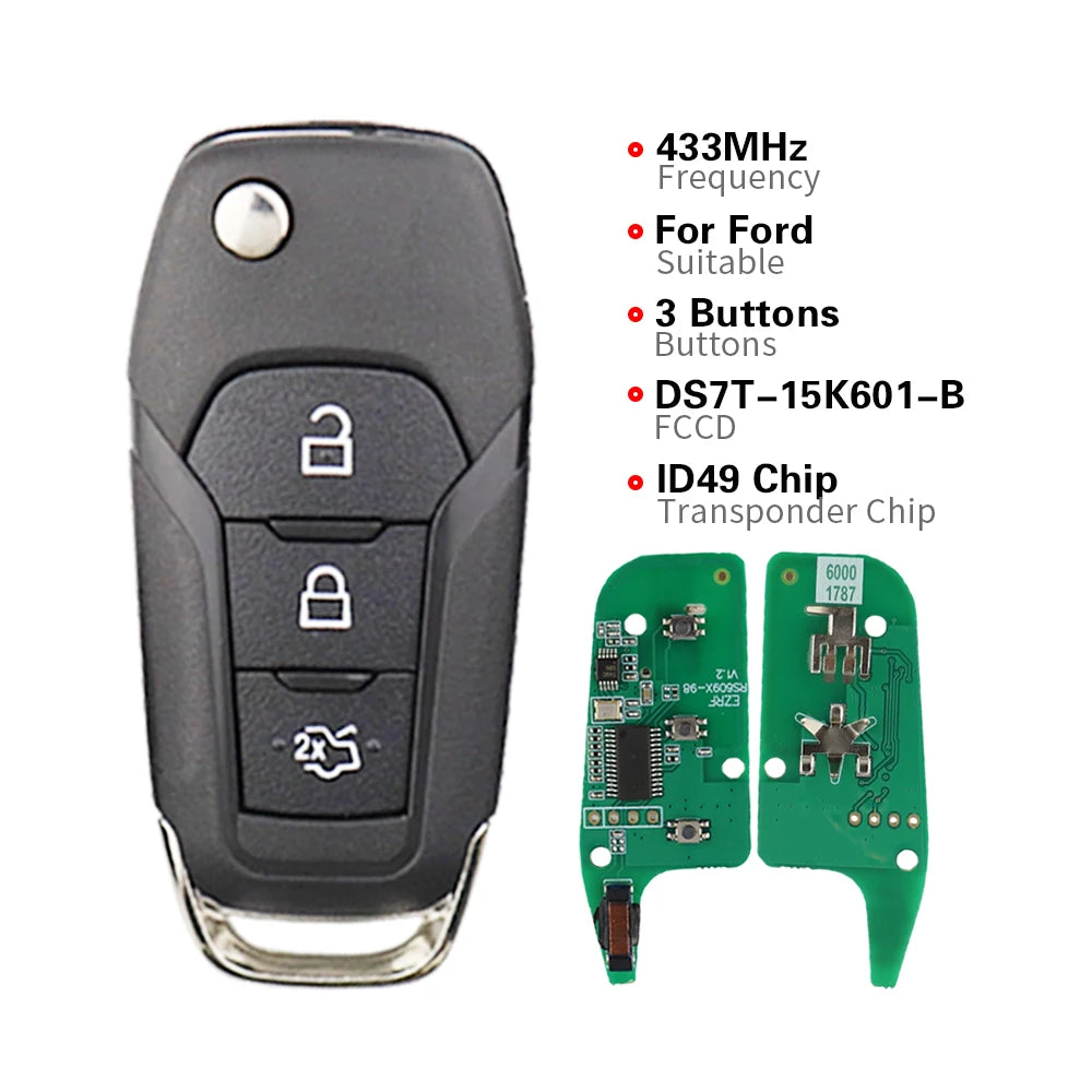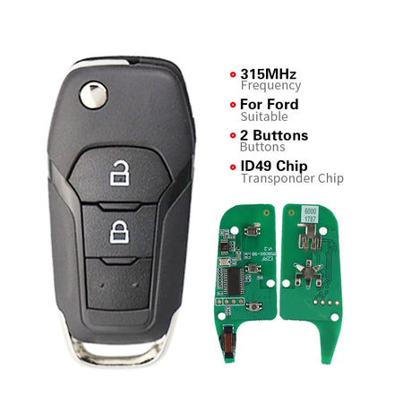 Tämä etäisyysavain käyttää ID49-transponderisirua ja toimii taajuuksilla 315/433/902 MHz, mikä varmistaa laajan yhteensopivuuden tuettujen Ford-ajoneuvojen kanssa. Se on rakennettu kestämään, ja siinä on kestävä ABS+metalli-rakenne, ja se sisältää olennaiset elektroniikat ja akun sisällä. Pakkaus toimitetaan ilman brändilogo-tarraa, mikä pitää muotoilun siistinä ja myyntiohjeiden mukaisena.