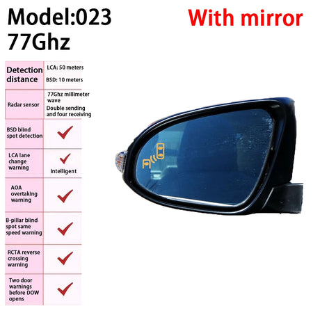 Toyota Verso AR20 BSD Radarvaroitusjärjestelmä, jossa on sokean alueen havaitsemistoiminto, on tarkoitukseen rakennettu turvallisuusparannus, joka on suunniteltu Toyota Verso AR20 -malleille vuosilta 2009–2018. Kaksi mmwave-radaria (24 GHz / 72 GHz), jotka on asennettu takapuskurin päälle, skannaavat jatkuvasti takasokeita alueita ja niiden ulkopuolelle, havaiten liikkuvia kohteita käytännössä 3–10 metrin etäisyydellä takasivusta. Kun liikettä havaitaan, järjestelmä sytyttää asianmukaisen LED-valon ja laukaisee auton signaalin tai äänihälytyksen auttaakseen sinua välttämään kaistanvaihtoon liittyviä konflikteja tai läheisiä takakontakteja. Jos haluat parantaa ulkonäköä ja turvallisuutta, voit valita laserivaroitusvalokuvion räätälöimisen alkuperäisten takapeilien mukaiseksi, samalla kun hinta pysyy samana. Tämä järjestelmä on enemmän kuin vain anturijärjestelmä—se on kattava kaistanvaihto- ja sokean alueen apuväline. Se tukee useita turvallisuusominaisuuksia ja varoituksia auttaakseen sinua tekemään älykkäämpiä ajopäätöksiä: