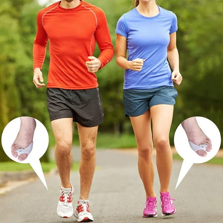 Otkrijte blagu, ciljanu olakšicu za Hallux Valgus s parom silikonskih korektora za prste iz RooRuns. Izrađeni od kože prijateljskog silikona, ovaj par djeluje između palca i susjednog prsta kako bi ublažio pritisak, promicao pravilno poravnanje prstiju i smanjio svakodnevnu nelagodu. Lagani i ponovo upotrebljivi, diskretno se uklapaju ispod čarapa i cipela za udobno nošenje tijekom cijelog dana.