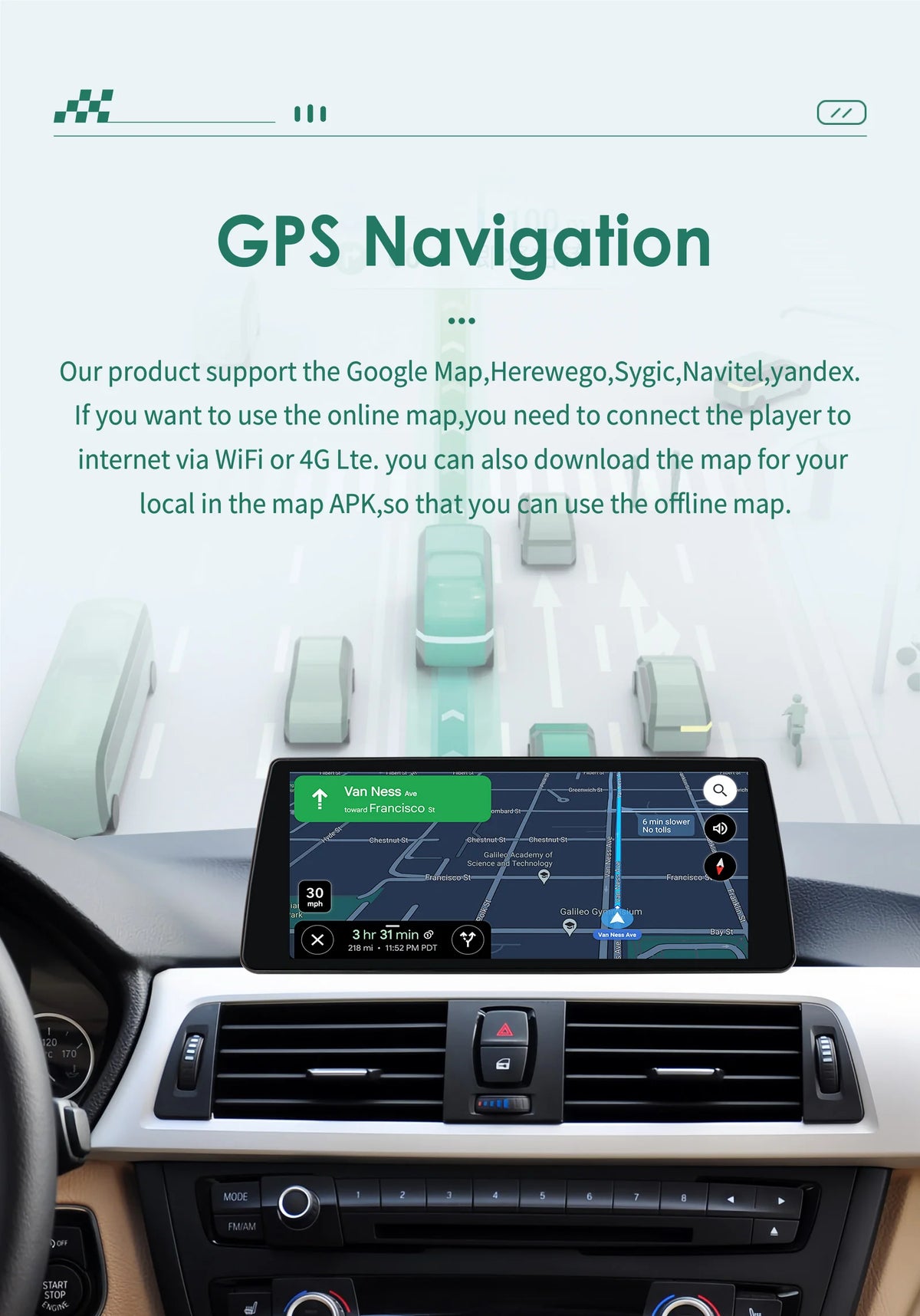 Iskusite modernu vožnju s responzivnim, visoko-rezolucijskim prikazom i snažnim multimedijskim mogućnostima. Uređaj podržava CarPlay i Android Auto za jednostavan hands-free pristup navigaciji, pozivima, porukama i aplikacijama. Ugrađeni GPS osigurava pouzdanu navigaciju, dok dodirni ekran, kompatibilnost s kontrolama na volanu i opcionalna 4G/3G povezanost omogućuju vam da ostanete povezani u pokretu. S DSP-om (opcionalno), izlazom od 50W×4 i nizom jezičnih opcija, ova glavna jedinica donosi vrhunski zvuk i globalnu upotrebljivost u vašem BMW interijeru.