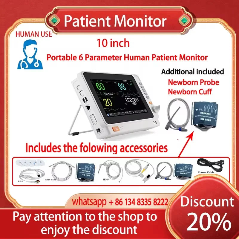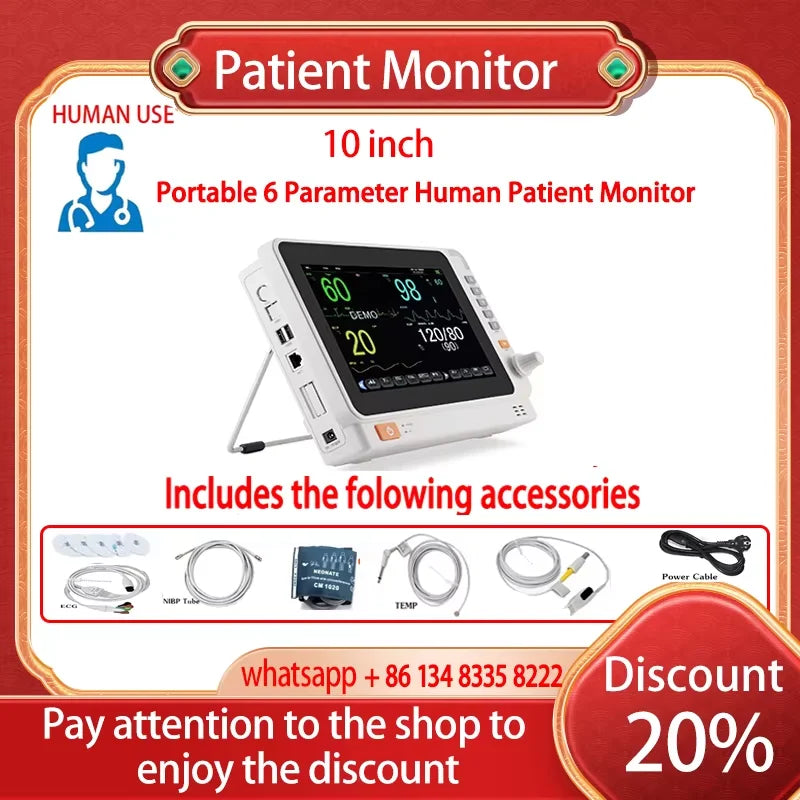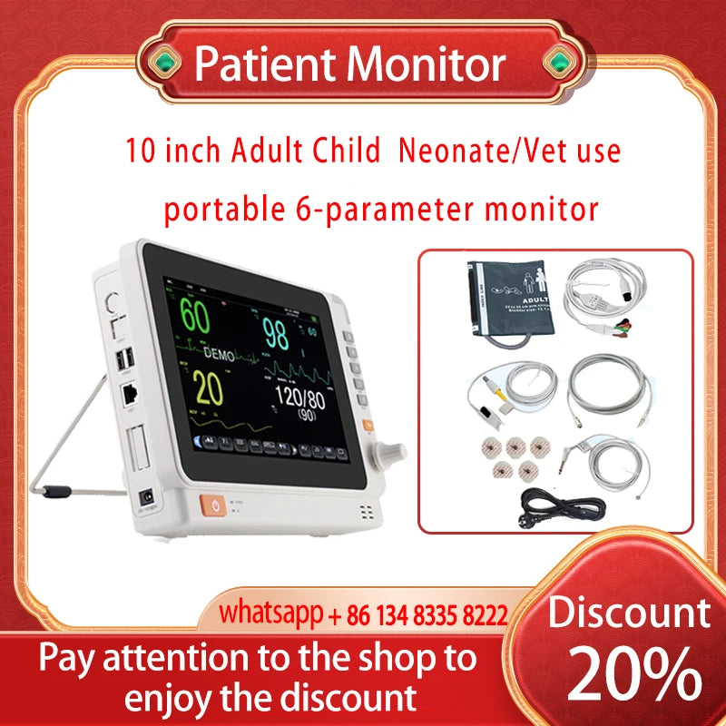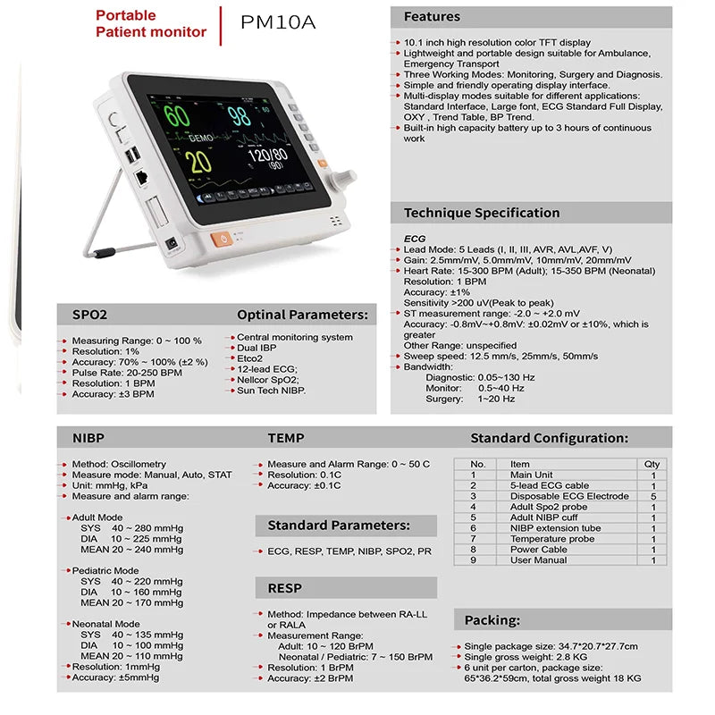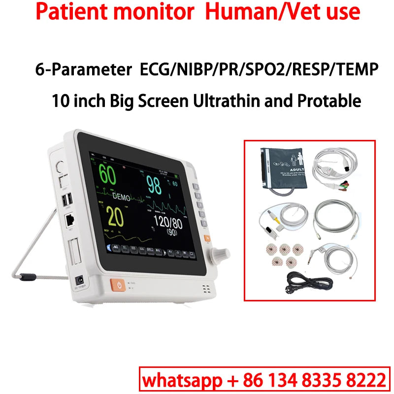 - Vrsta proizvoda: 10 inčni prijenosni 6-parametarski veterinarski ECG NIBP SpO2 Temp monitor