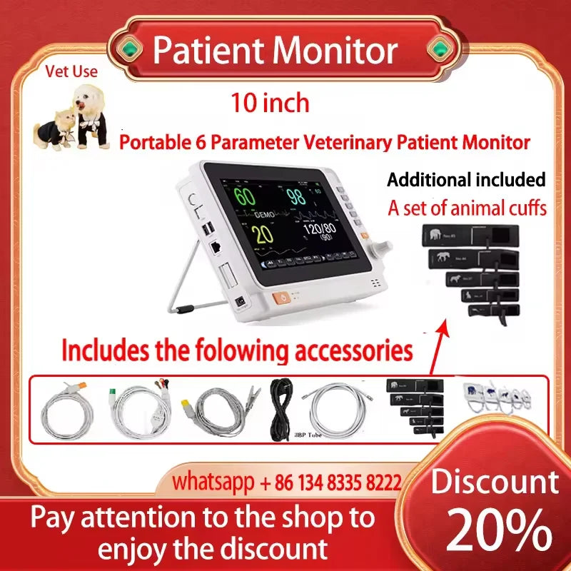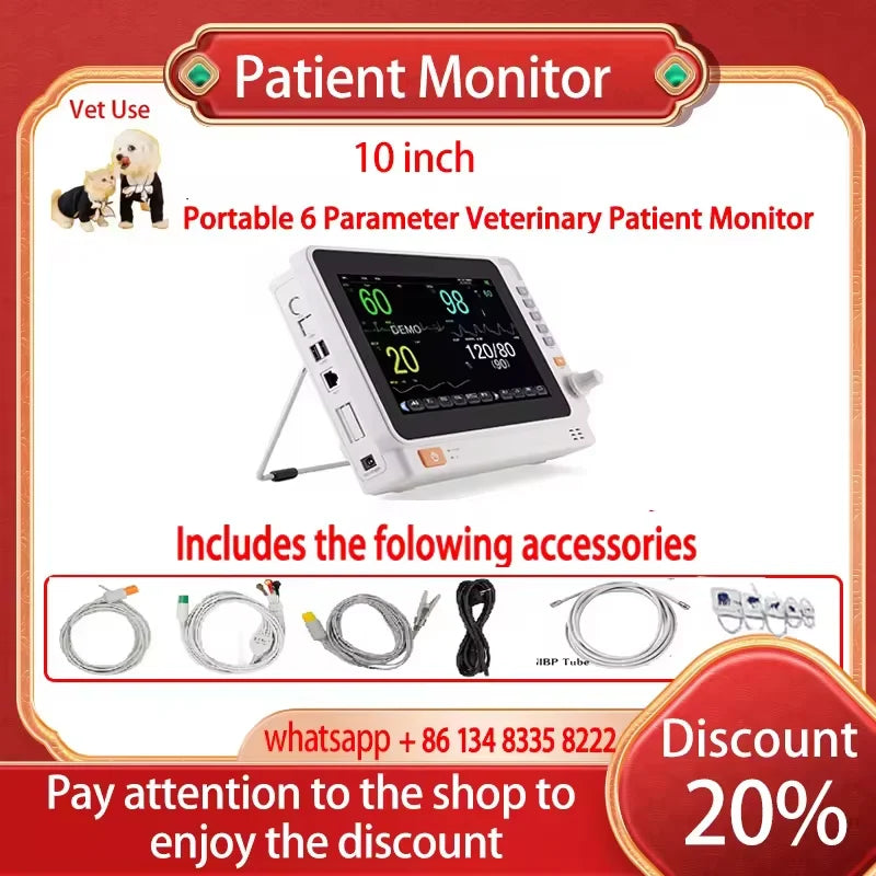 - 1 x 10 inčni prijenosni 6-parametarski veterinarski ECG NIBP SpO2 Temp