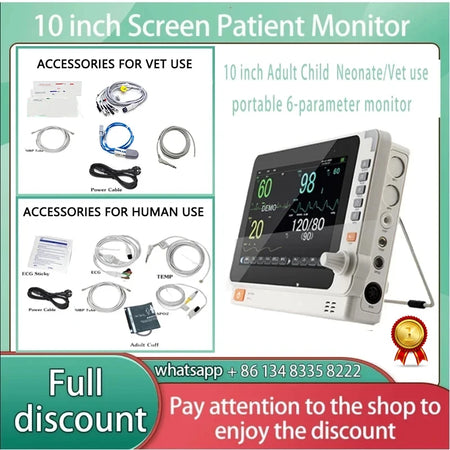 - 1 x 10-inčni prijenosni monitor s 6 parametara ECG NIBP SpO2