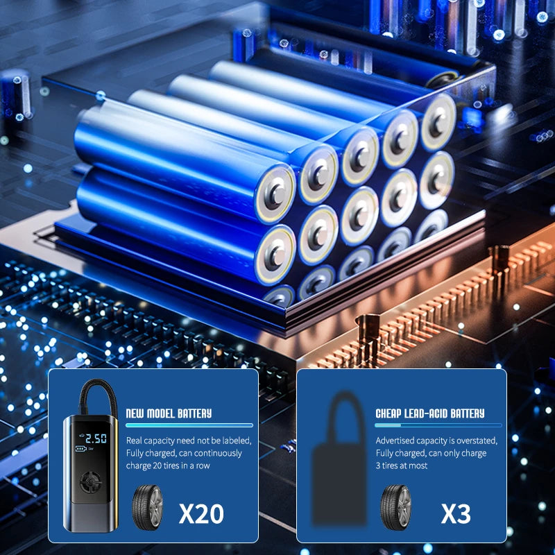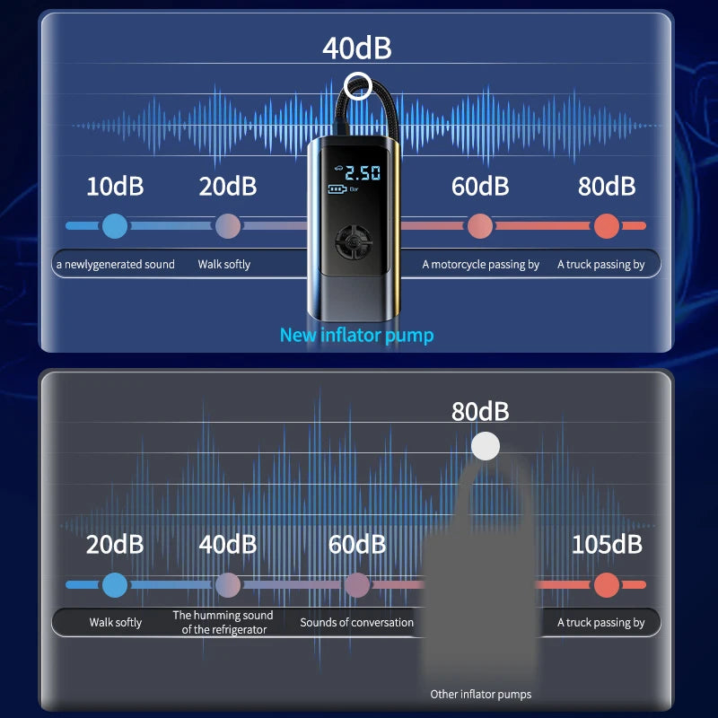 - Postignite brzo napuhavanje: snaga od 60W i klip s brzinom od 19000+ omogućuju napuhavanje guma ili napuhavanja za otprilike 10 sekundi za brze popravke uz cestu.