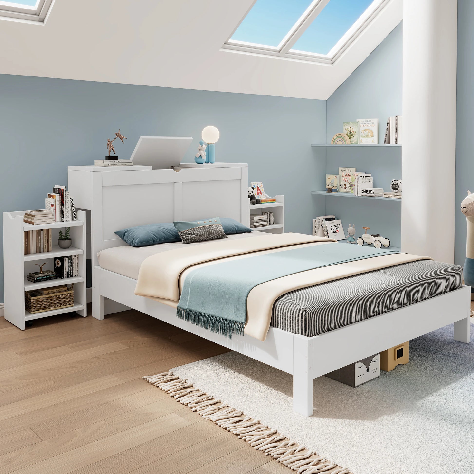 Dizajniran za kompaktan i organiziran život, ovaj okvir kreveta ima dva klizna noćna ormarića koja se protežu za brzi pristup telefonima, knjigama ili noćnim potrepštinama, a vraćaju se u uzglavlje kada se ne koriste — držeći vaš noćni ormarić bez nereda i vaš pod čistim.