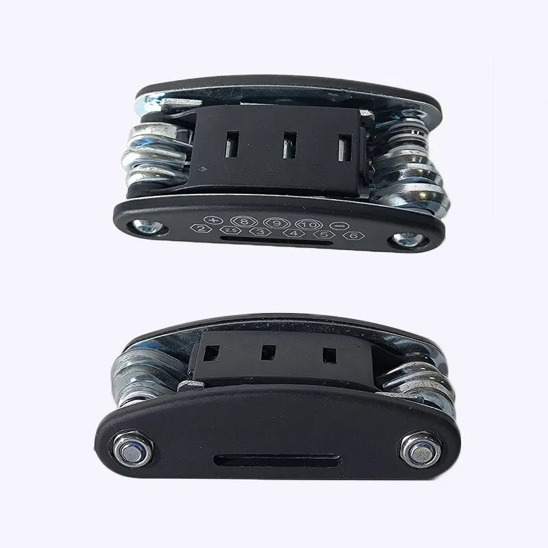 Upoznajte 16 u 1 Višenamjenski alat za bicikl s imbus ključevima 2mm-6mm — kompaktni, crni alat za popravak dizajniran za brzu, pouzdanu održavanje bicikla gdje god vozite. Težak samo 230 g i dimenzija 2.6 cm x 4.6 cm x 9 cm, ovaj prijenosni alat lako stane u džep ili torbu za sjedalo. Kombinira osnovne imbus ključeve (2 mm, 2.5 mm, 3 mm, 4 mm, 5 mm, 6 mm) s utičnim ključevima (8 mm, 9 mm, 10 mm), ravnim ključevima (8 mm, 10 mm, 15 mm), plus ravnim i križnim odvijačima, alat za žbice 14G i produžni štap — pružajući vam svestran alat za popravak u jednom kompaktnom paketu. Sve-u-jednom dizajn pomaže vam zategnuti vijke, prilagoditi komponente i izvršiti jednostavne popravke na terenu bez nošenja glomaznog alata, rješavajući uobičajene probleme na cesti i održavajući vašu vožnju glatkom. Izrađen za svakodnevnu upotrebu, ovaj alat je prikladan za bicikle i može se koristiti u drugim životnim scenarijima gdje je potrebna prava veličina ključa.