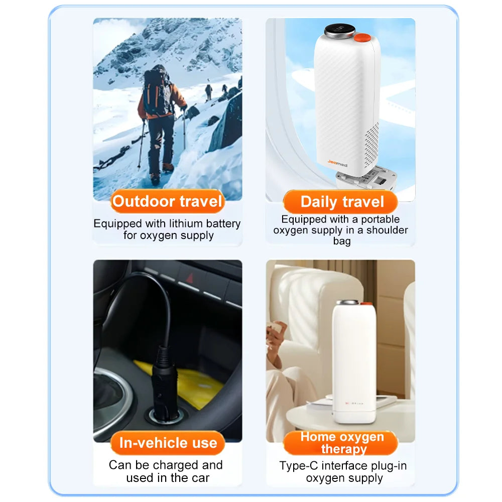 Kompaktan, lagan i jednostavan za korištenje, kombinira pouzdanu isporuku kisika s praktičnom udobnošću. S CE certifikatom za sigurnost i kvalitetu, možete se osloniti na dosljedne performanse gdje god se nalazili.