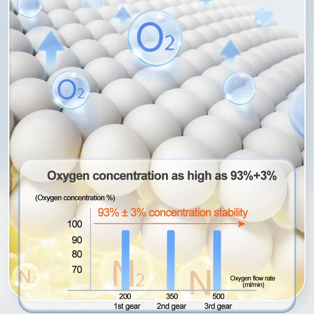 - Dosljedna podrška kisiku: 93% koncentracija kisika pri protoku od 1 L/min pomaže održavanju stalne suplementacije.