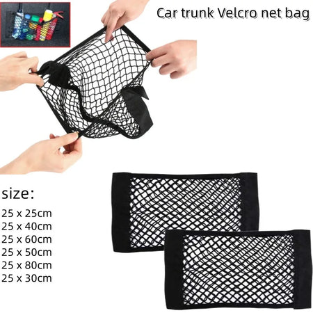Držite svoj automobil urednim i svoje potrepštine na dohvat ruke s Univerzalnom mrežastom torbom za prtljažnik automobila i organizatorom za naslon sjedala u crnoj boji. Ovaj univerzalni organizator za prtljažnik automobila koristi glatku elastičnu mrežastu mrežu i sigurno pričvršćivanje gumbom kako bi spriječio klizanje ili pad predmeta, čak i na neravnim cestama. Čvrsto se drži uz zidove prtljažnika ili naslone sjedala, pretvarajući nered u organizirano skladište za predmete poput vašeg telefona, karata i malih alata. Izrađena od izdržljive tkanine i najlona s ojačanim rubovima, otporna je na deformacije i izdržava svakodnevnu upotrebu. Dostupna u više veličina od 25x25 cm do 25x80 cm kako bi odgovarala većini automobila, pružajući fleksibilno skladištenje za područja prtljažnika ili stražnjih sjedala. Drži sredstva za čišćenje pri ruci ili vam omogućuje da fiksirate predmete na mjestu za uredniji interijer.