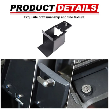 Upoznajte Hummer H3 2005-2009 Skladište za naslon ruke Privatnost zaključavanje sef — kompaktna, izdržljiva privatna lozinka zaključavanje dizajnirana da odgovara skladištu središnjeg naslona ruke vašeg H3. Izrađena od visokokvalitetnog ugljičnog čelika s elegantnom crnom završnom obradom, osigurava dragocjenosti, smanjuje nered i pomaže u odvraćanju od slučajne krađe dok vozite. Proizvedena je u ISO 9001-certificiranom pogonu i lako se instalira s dvostrano ljepljivom podlogom za čisto, sigurno pristajanje unutar vašeg vozila.