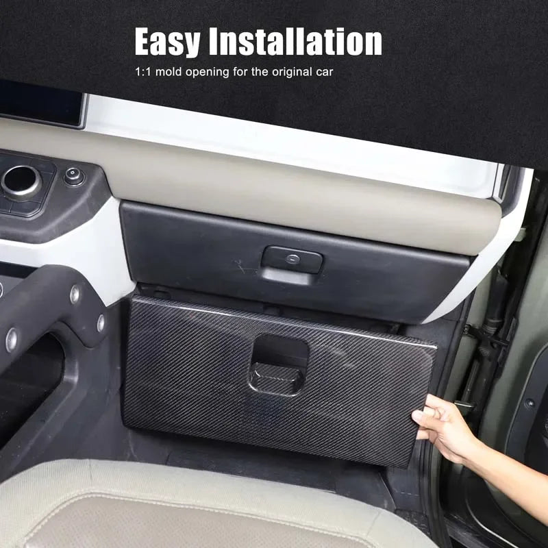 - Pruža autentičan izgled karbonskih vlakana koji poboljšava unutarnje stiliziranje Defendera dok štiti kutiju rukavica od ogrebotina.