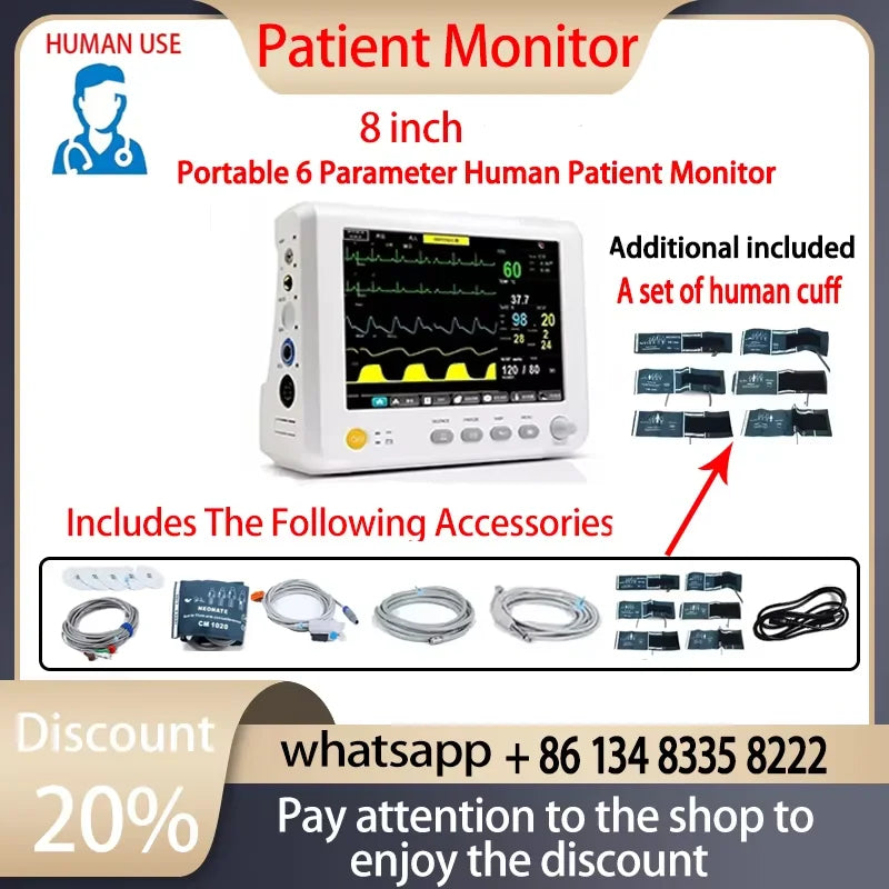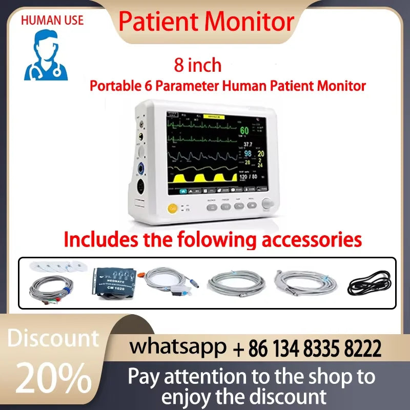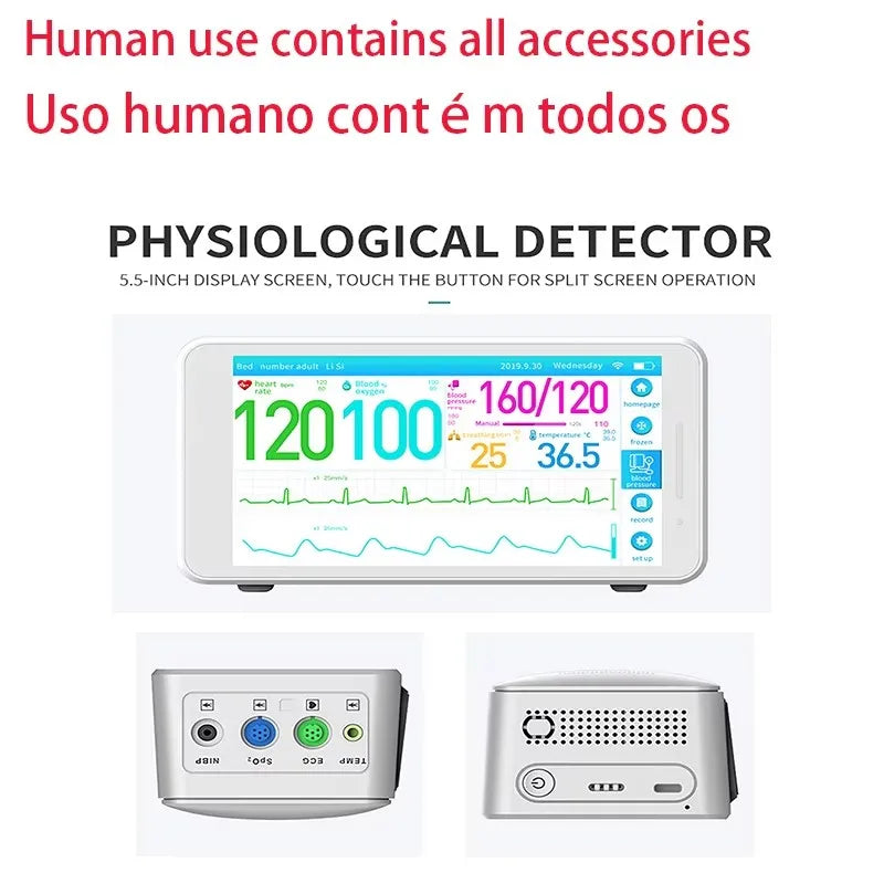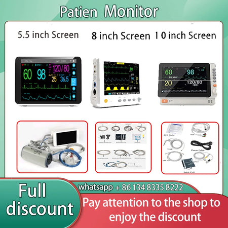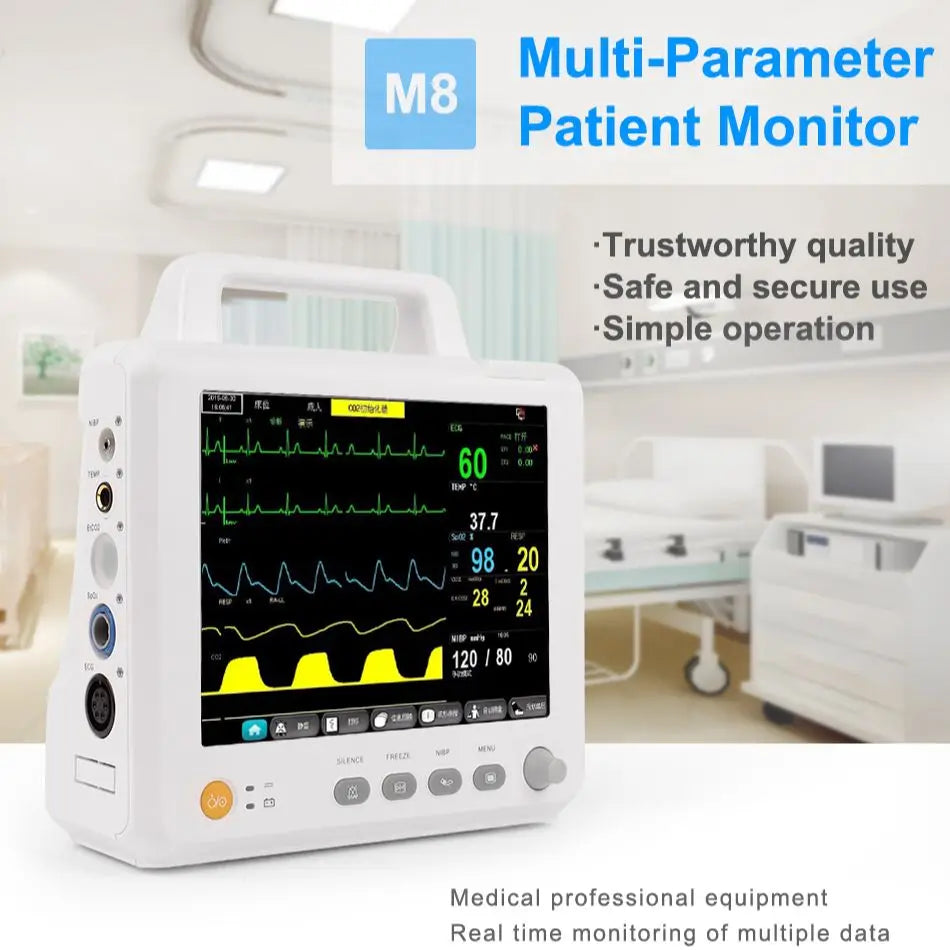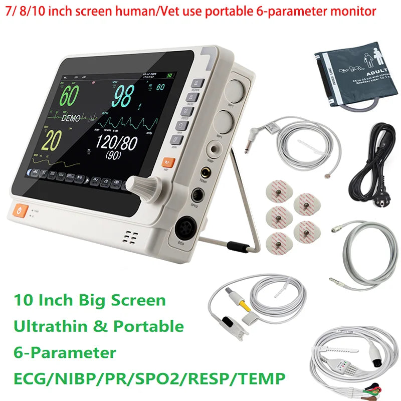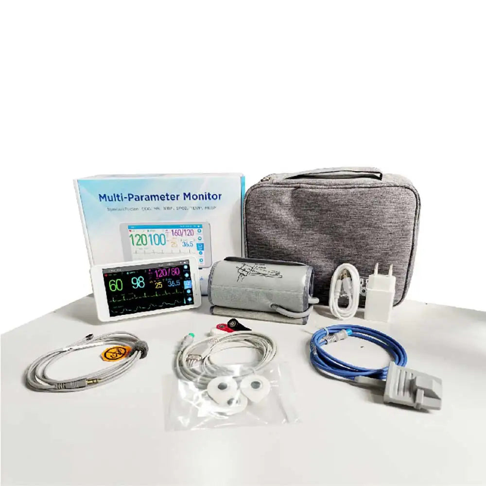 Prijenosni 5.5/8/10-Inčni Monitor za 6 Vitalnih Znakova pruža praćenje bolničke kvalitete u kompaktnom, lako prenosivom uređaju. Ovaj 5-u-1 prijenosni monitor kombinira EKG, neinvazivni krvni tlak (NIBP), pulsnu oksimetriju (SpO2), temperaturu i praćenje disanja za brze, točne zdravstvene provjere kod kuće, u klinikama, na odjelu ili tijekom hitnih slučajeva. Izrađen za pouzdanost i svakodnevnu upotrebu, podržava 3-kanalni EKG i nudi opcionalne funkcije EtCO2 i glukoze u krvi za prošireno praćenje zdravlja.