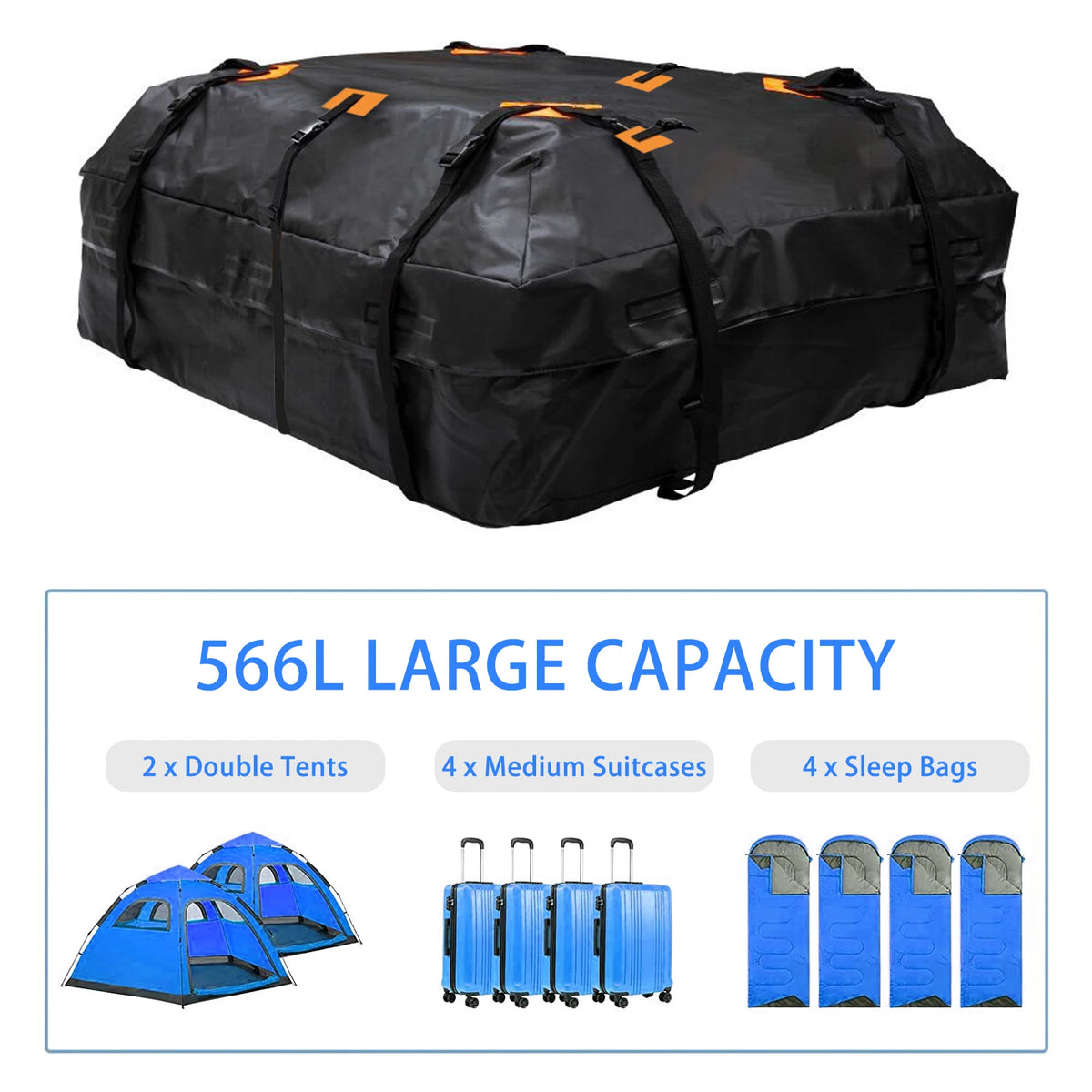 Upoznajte 566L nosač tereta za krov automobila od KKMOON — čvrsto, vremenski otporno rješenje za pohranu dizajnirano za masovno proširenje prostora za teret vašeg vozila. Napravljen od visokokvalitetnog 600D Oxford platna s izdržljivom 420D podlogom, ova torba je projektirana da bude vodootporna i otporna na kidanje, čuvajući vašu opremu sigurnom od kiše, prašine i cestovne prljavštine. Šest fiksnih traka s kopčama i dvostruko šivani šavovi osiguravaju čvrsto, sigurno držanje, čak i na neravnim autocestama. Njegov veliki kapacitet savršen je za obiteljska putovanja, kampersku opremu i vikend avanture.