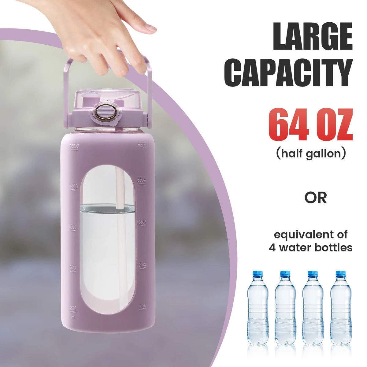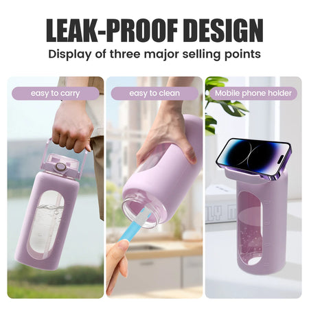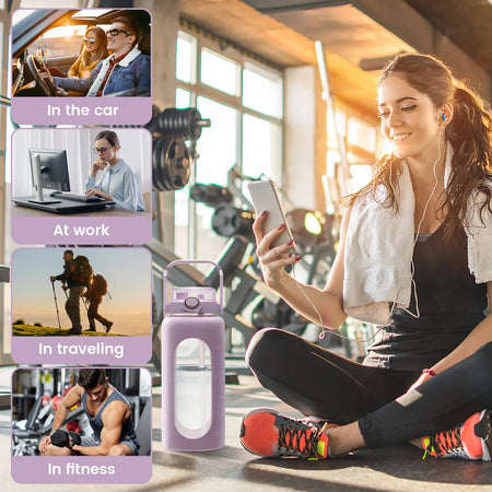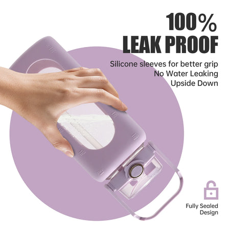 Dizajnirana za praktičnu svakodnevnu hidrataciju, ova 64oz (2L) staklena boca pomaže vam da ostanete na pravom putu s vašim ciljevima unosa tekućine. Nepropusni poklopac otvara se jednostavnim pritiskom na gumb i nudi dvije opcije pijenja: naginjanje i pijenje direktno iz otvora ili pijuckanje kroz slamku za iskustvo bez nereda. Silikonska zaštitna navlaka ne samo da dodaje stil, već također štiti staklo od manjih udaraca, dok vanjska mililitarna skala na navlaci pomaže da lako pratite unos. Lako se čisti zahvaljujući širokom otvoru i uključnoj četki za čaše, a pogodna je za pranje u vrućoj vodi ili u perilici posuđa za brzo osvježenje.