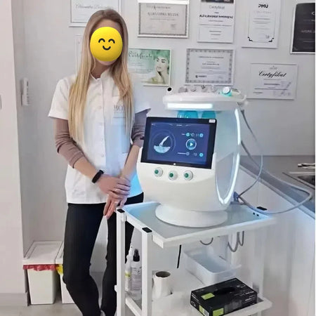 "Predstavljamo 7 u 1 Analizator kože RF Score Kisik Spa Mašinu u Ice Blue—svestran uređaj za njegu kože dizajniran za kućnu upotrebu i profesionalne postavke. Ovaj 7-u-1 sustav kombinira tehnologiju kisik spa s kompaktnim oblikom kako bi se riješili uobičajeni problemi s kožom u jednoj sesiji. Uživajte u svjetlijoj koži, poboljšanoj vlažnosti, bistrijem tenu i obnovljenom, čvršćem izgledu—bez napuštanja svog doma ili rezervacije spa termina."
