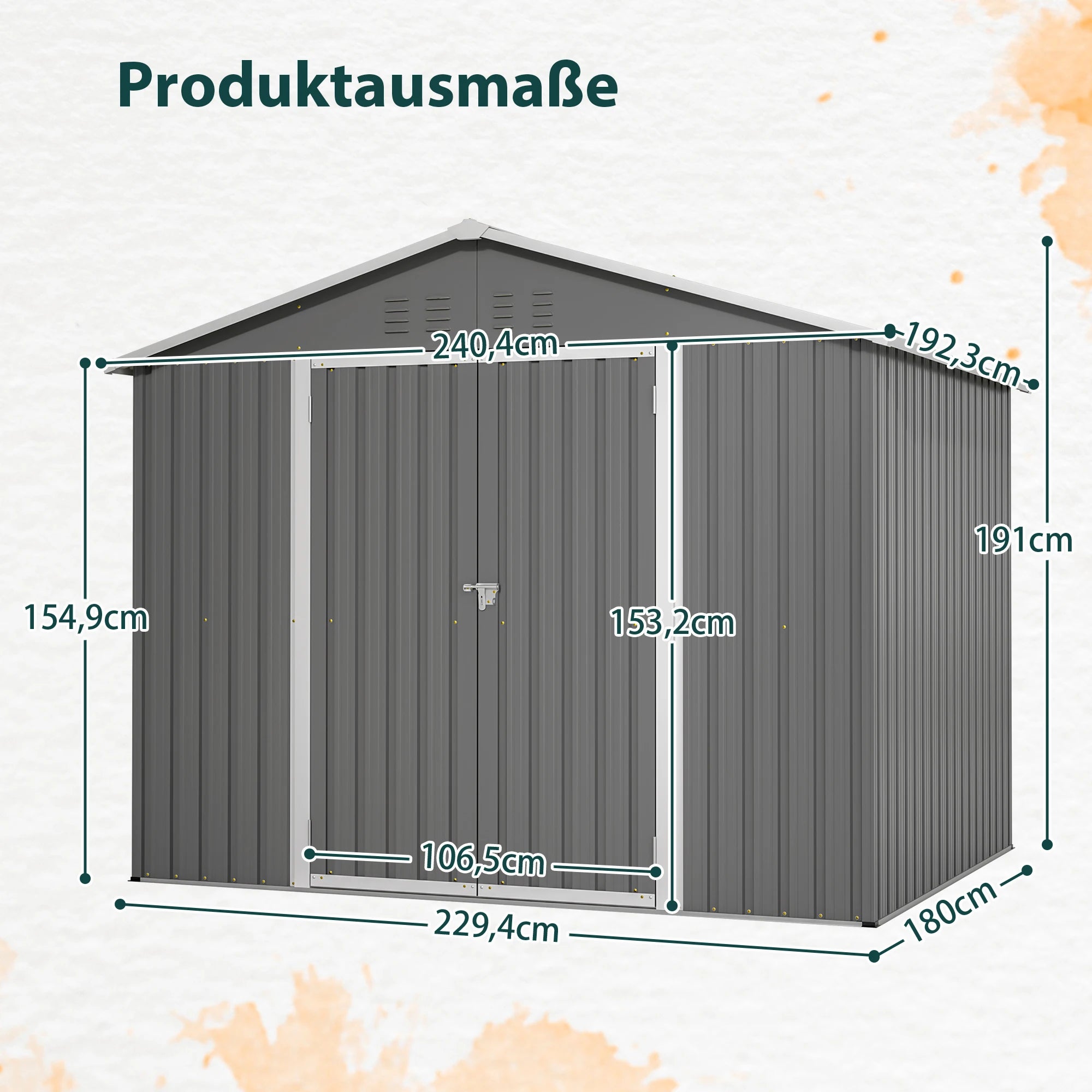 8x6ft Antracitni Metalni Alatni Štagalj Vodootporna Preklopna Vrata