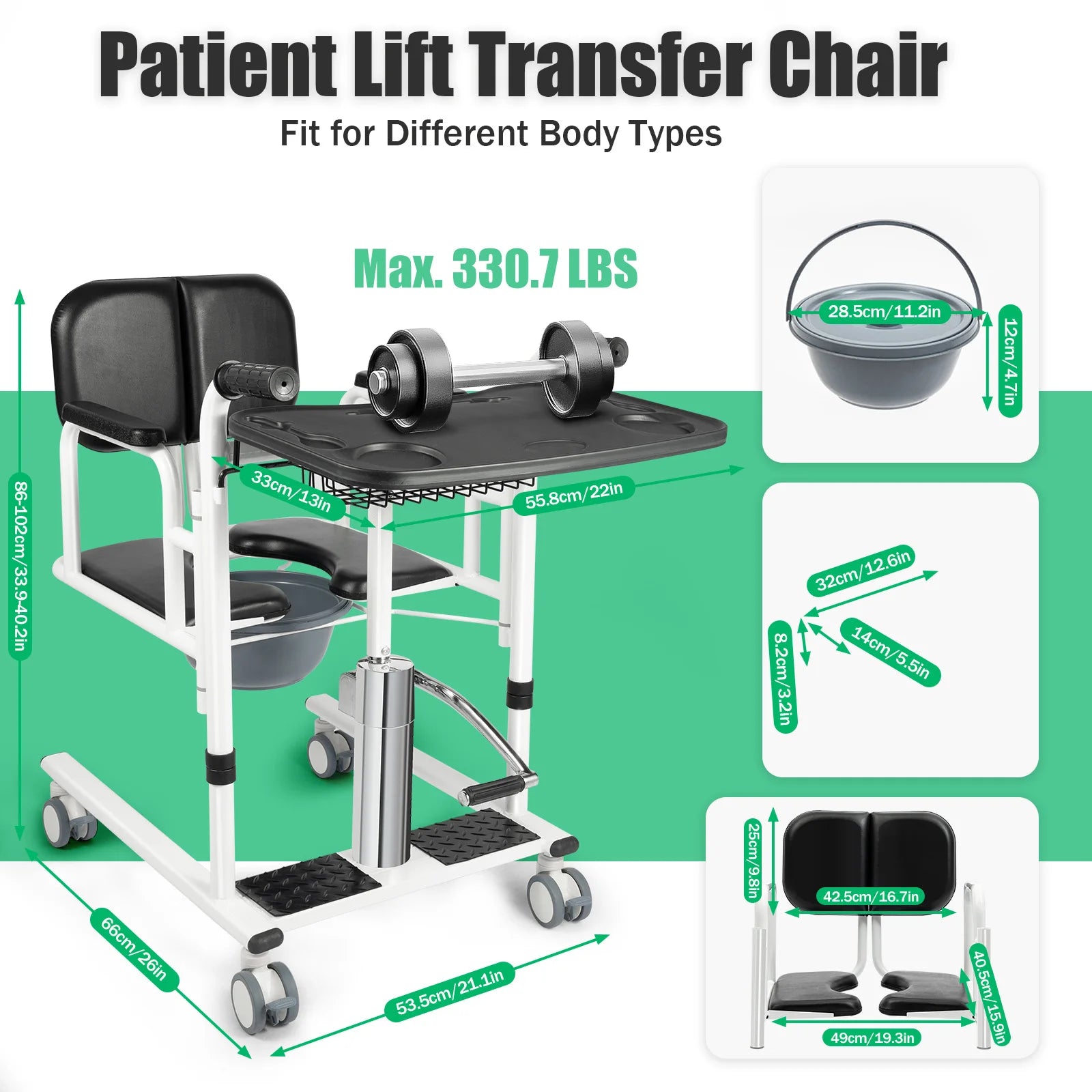 Predstavljamo Stolicu za Podizanje Pacijenata s Podesivom Visinom, Hidrauličnim Točkovima – modernu, samostojeću stolicu dizajniranu za pojednostavljenje kućne njege. Izrađena s izdržljivim okvirom od karbonskog čelika i obložena debelim sunđerom, ova stolica podržava do 150 kg (330.7 lbs) i nudi hidraulično podizanje na nožnu operaciju za podešavanje visine od 30.2 cm do 46.2 cm (11.9-18.2 in). Besprijekorno se prilagođava visinama sofe, kreveta ili stolice, čineći prijenose sigurnijima i udobnijima za pacijente i njegovatelje.