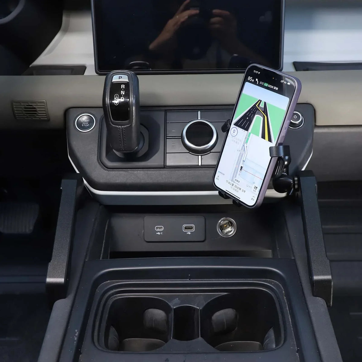 - Čist, integrirani izgled koji odgovara unutrašnjosti Defendara dok pruža praktičnu korisnost.