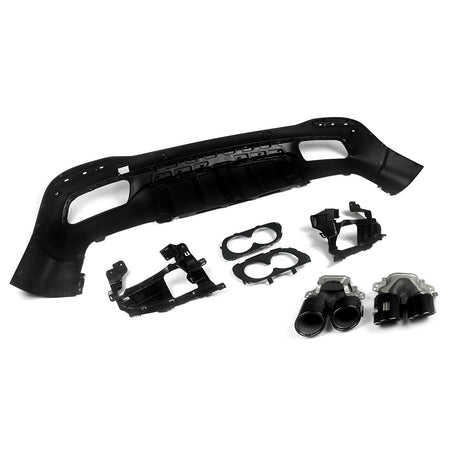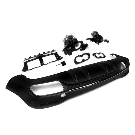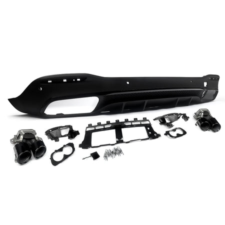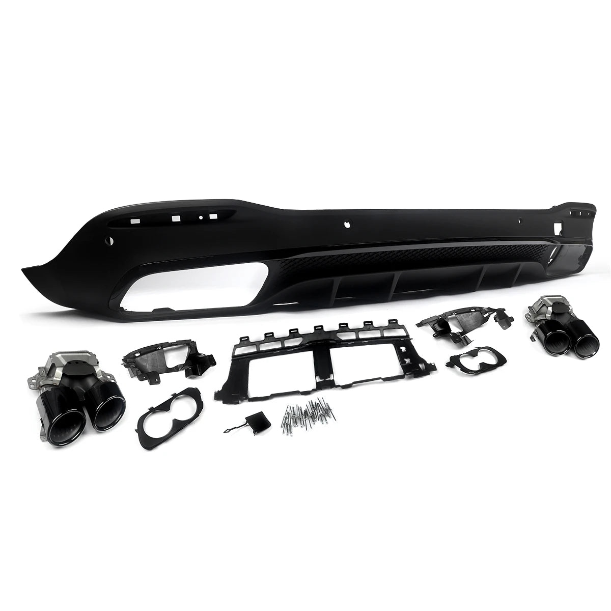 Ova performansna komponenta ne samo da poboljšava izgled, već također pruža praktičnu zaštitu za stražnji odbojnik, pomažući u održavanju izgleda dostojnog izložbe između vožnji. Komplet uključuje puni stražnji difuzor i dvostruke ispušne cijevi kako bi stvorio izgled sličan tvorničkom, integriranom izgledu. Imajte na umu: ovaj proizvod je za AMG-Line / Sport odbojnike i nije kompatibilan s osnovnim modelom.