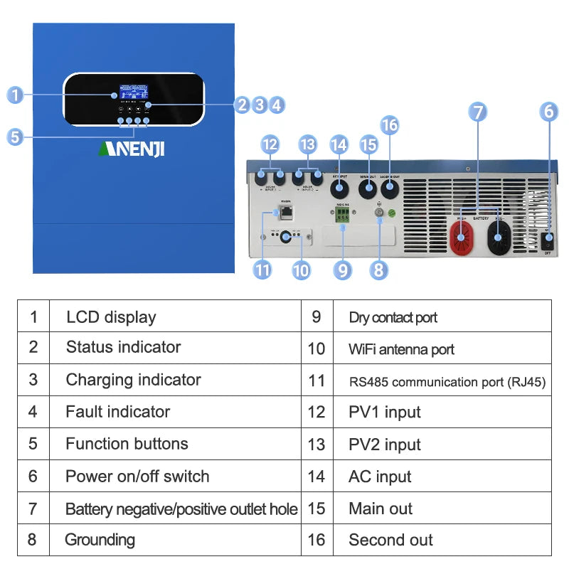 Upoznajte ANENJI hibridni solarni inverter 4KW-11KW, svestrano energetsko rješenje dizajnirano za domove i mala poduzeća. S skalabilnim izlazom od 4 kW do 11 kW i podrškom za 24 V ili 48 V sustave baterija, ovaj inverter napaja osnovne uređaje tijekom dana i pruža pouzdanu rezervu tijekom nestanka struje. Njegov izlaz čistog sinusnog vala štiti osjetljivu elektroniku i osigurava nesmetano djelovanje motora i elektronike. Ugrađeni MPPT kontroler optimizira solarno punjenje, izvlačeći maksimalnu energiju iz vaših panela čak i u izazovnim svjetlosnim uvjetima. WiFi povezanost omogućuje vam praćenje performansi, statusa baterije i opterećenja s bilo kojeg mjesta, tako da ostanete pod kontrolom svog energetskog sustava.