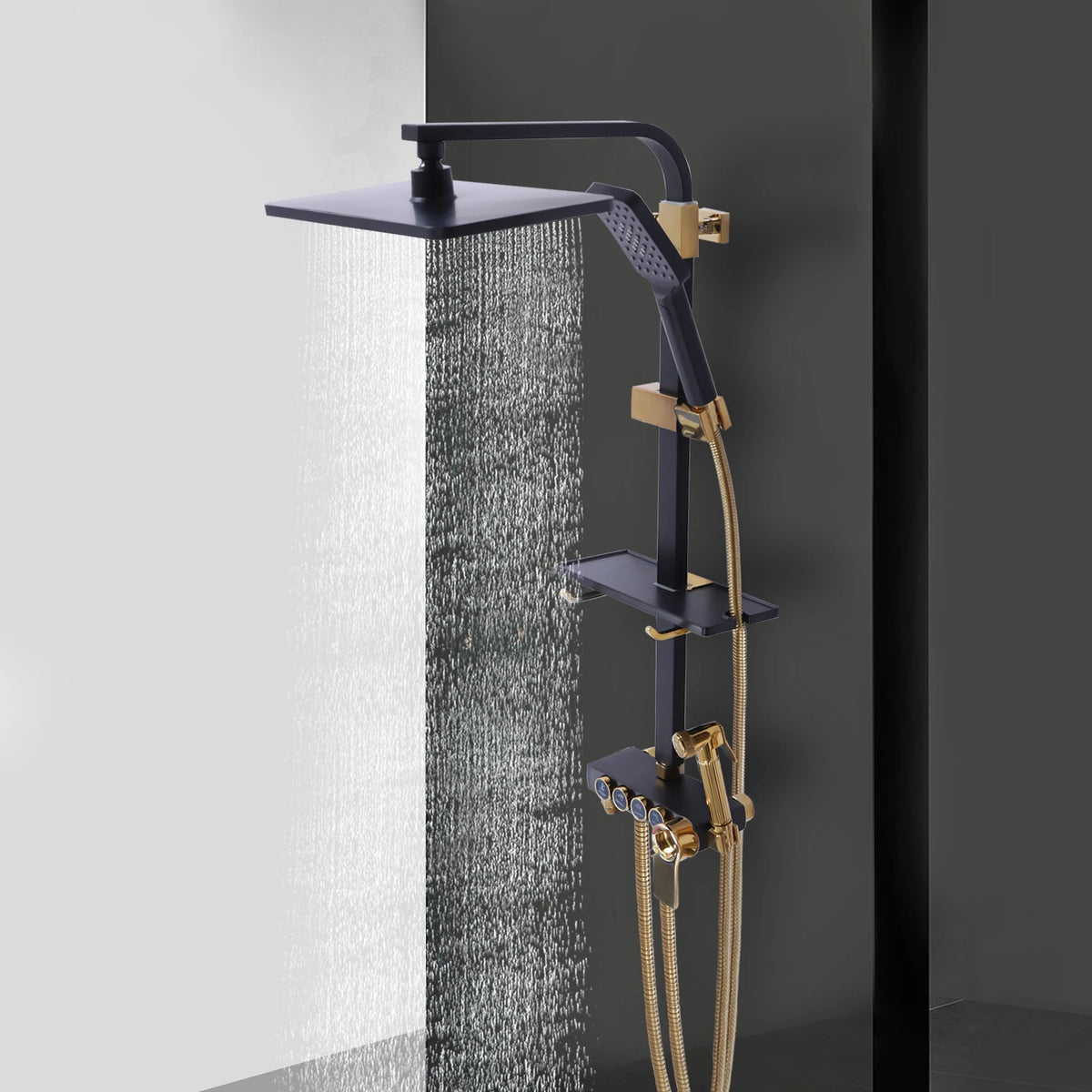 Set za tuširanje u kadi s konstantnom temperaturom – Tuš s kišom — Moderni zidni set za tuširanje u kadi koji pruža umirujući tuš s kišom i pouzdanu kontrolu konstantne temperature za sigurno i udobno kupanje.