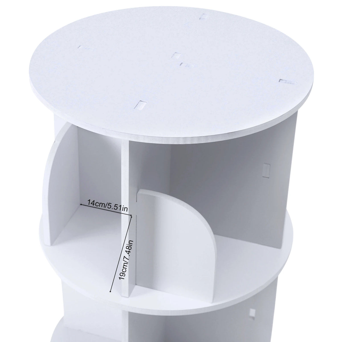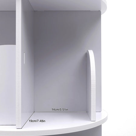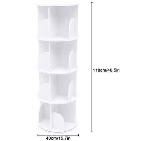 Polica za knjige s 360 stupnjeva rotirajućim dizajnom – Tiho okretanje — Kompaktna, prostor štedna rotirajuća polica za knjige u čistoj bijeloj PVC drvo-plastičnoj ploči koja nudi glatko 360° tiho okretanje za lak pristup knjigama, dekoru i predmetima za pohranu.