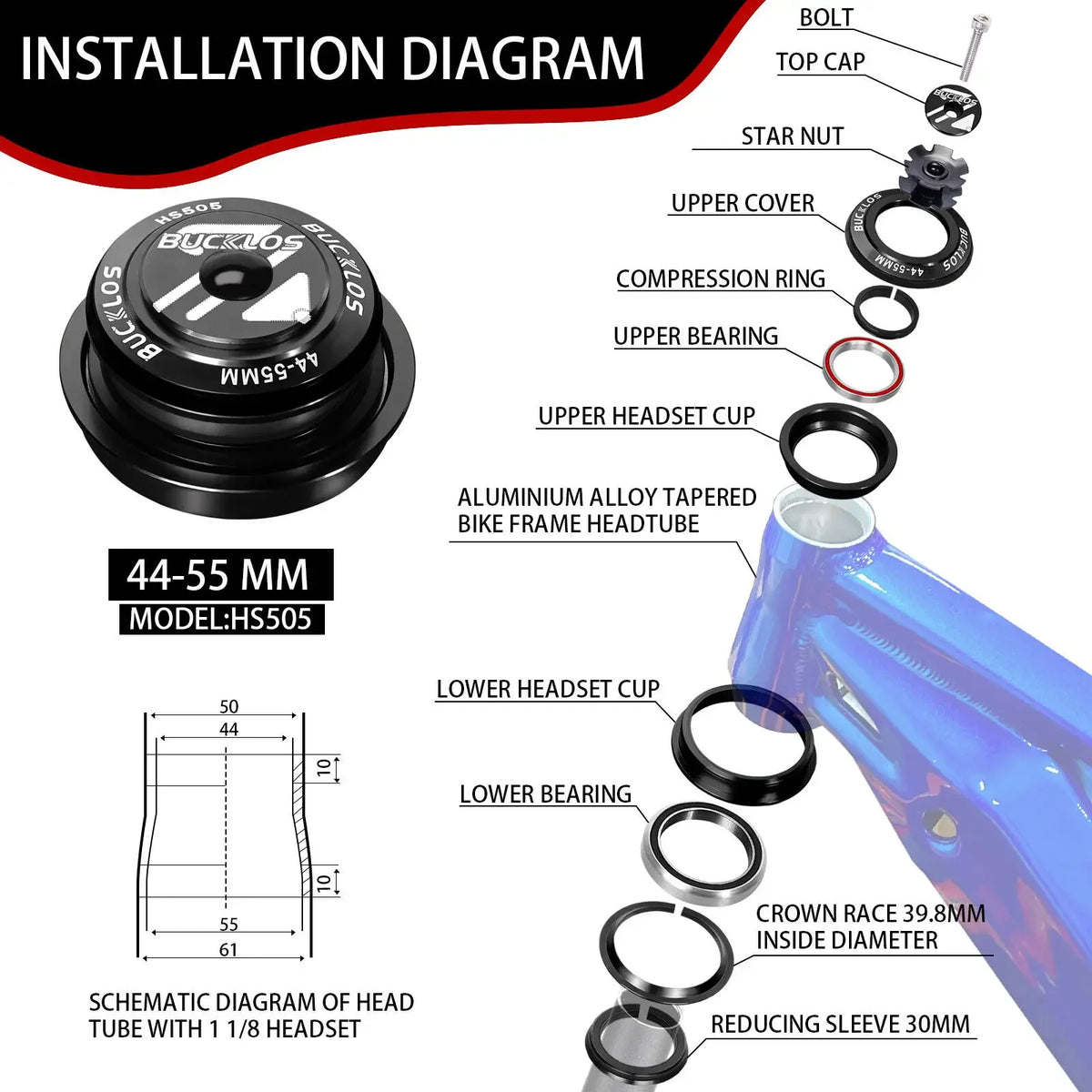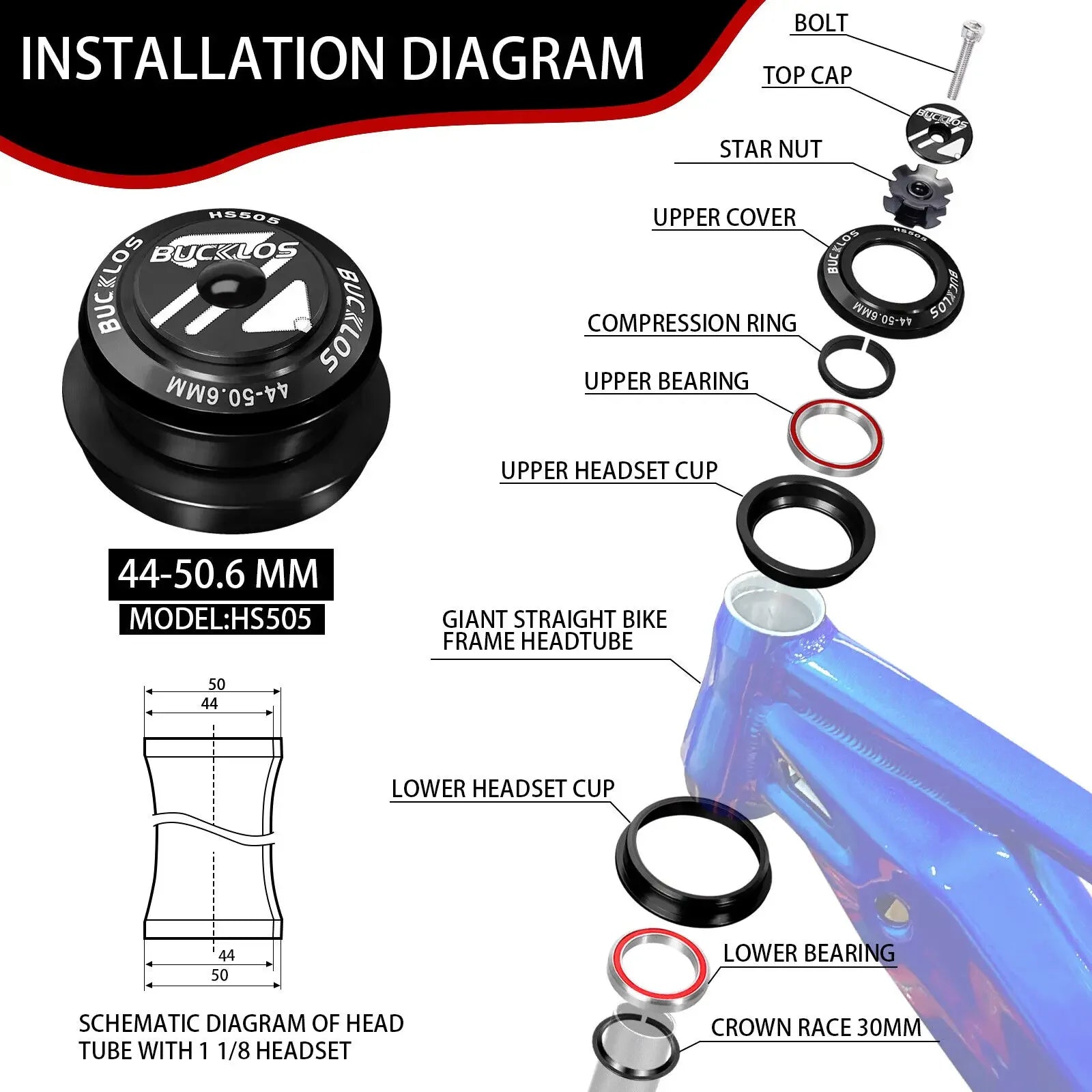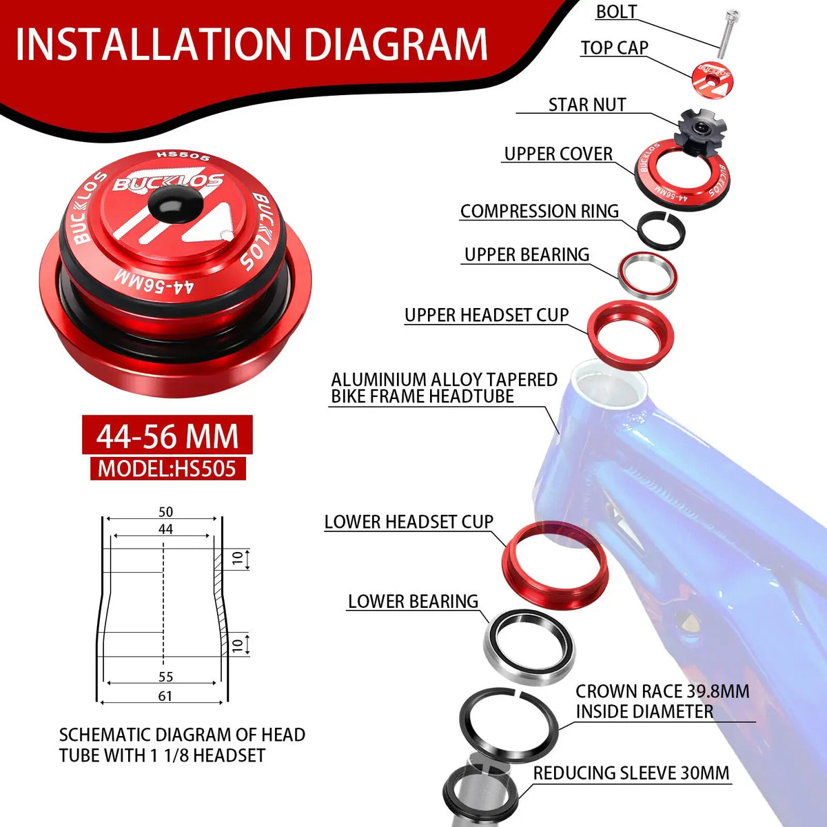 Bucklos Road Bike Headset Sealed Bearing for 34 44 50.6 52 55 56mm