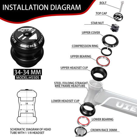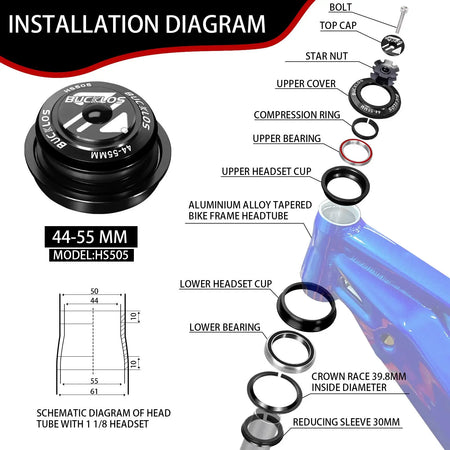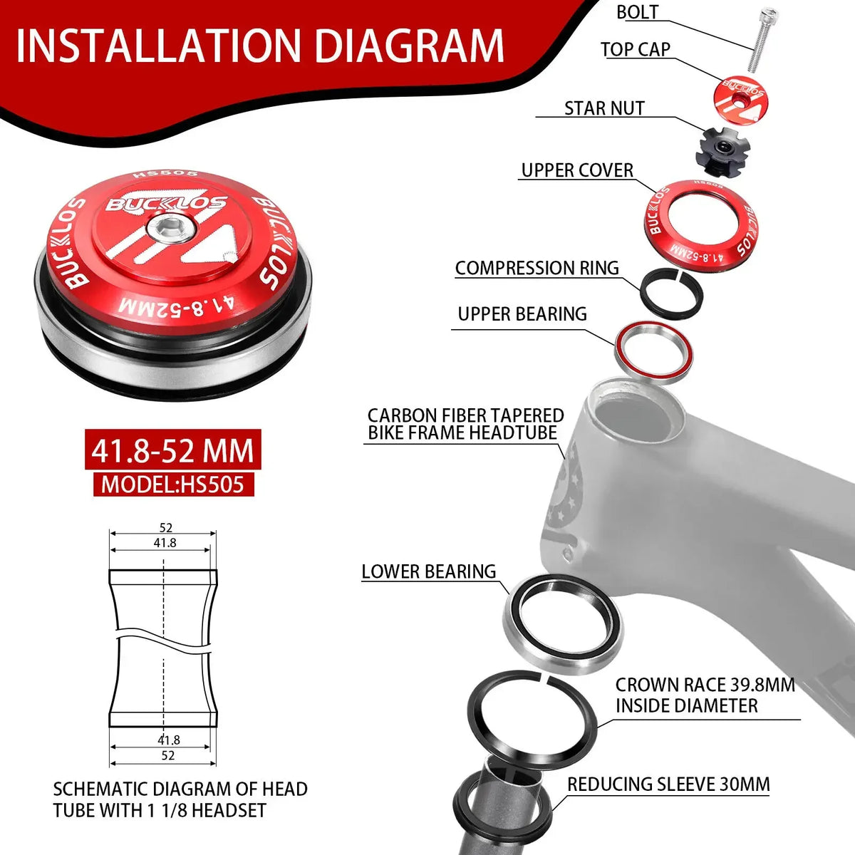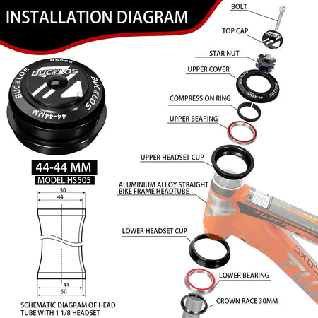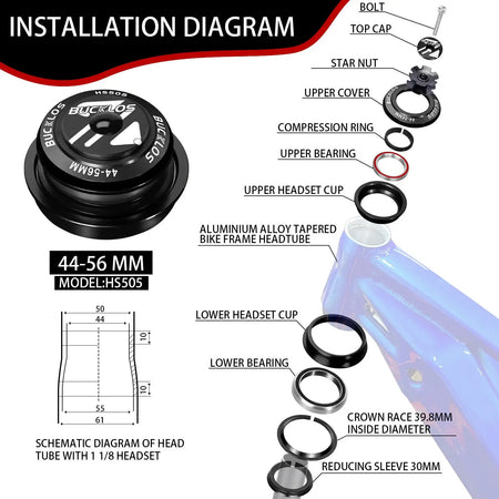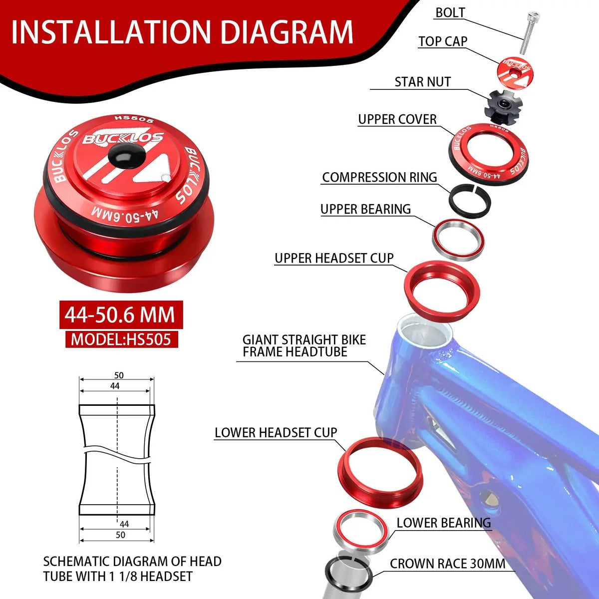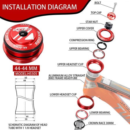 Bucklos Road Bike Headset Sealed Bearing for 34 44 50.6 52 55 56mm