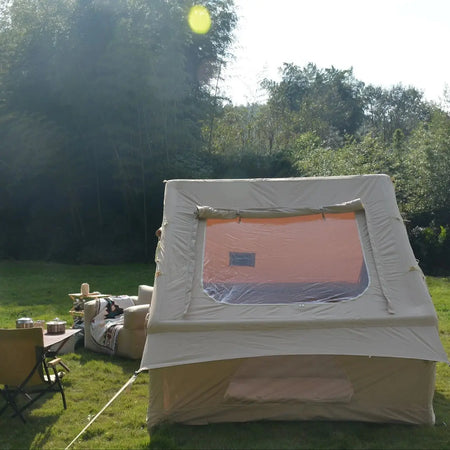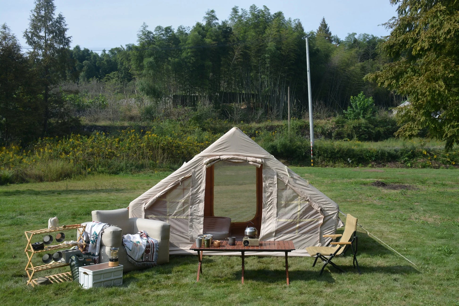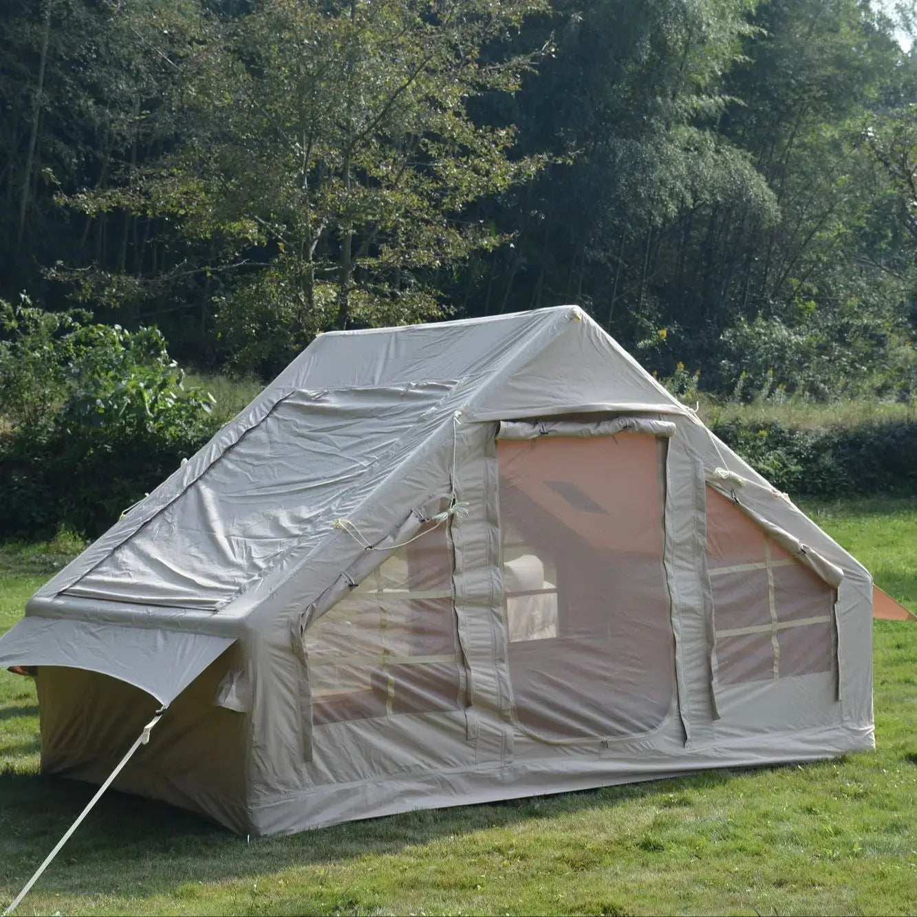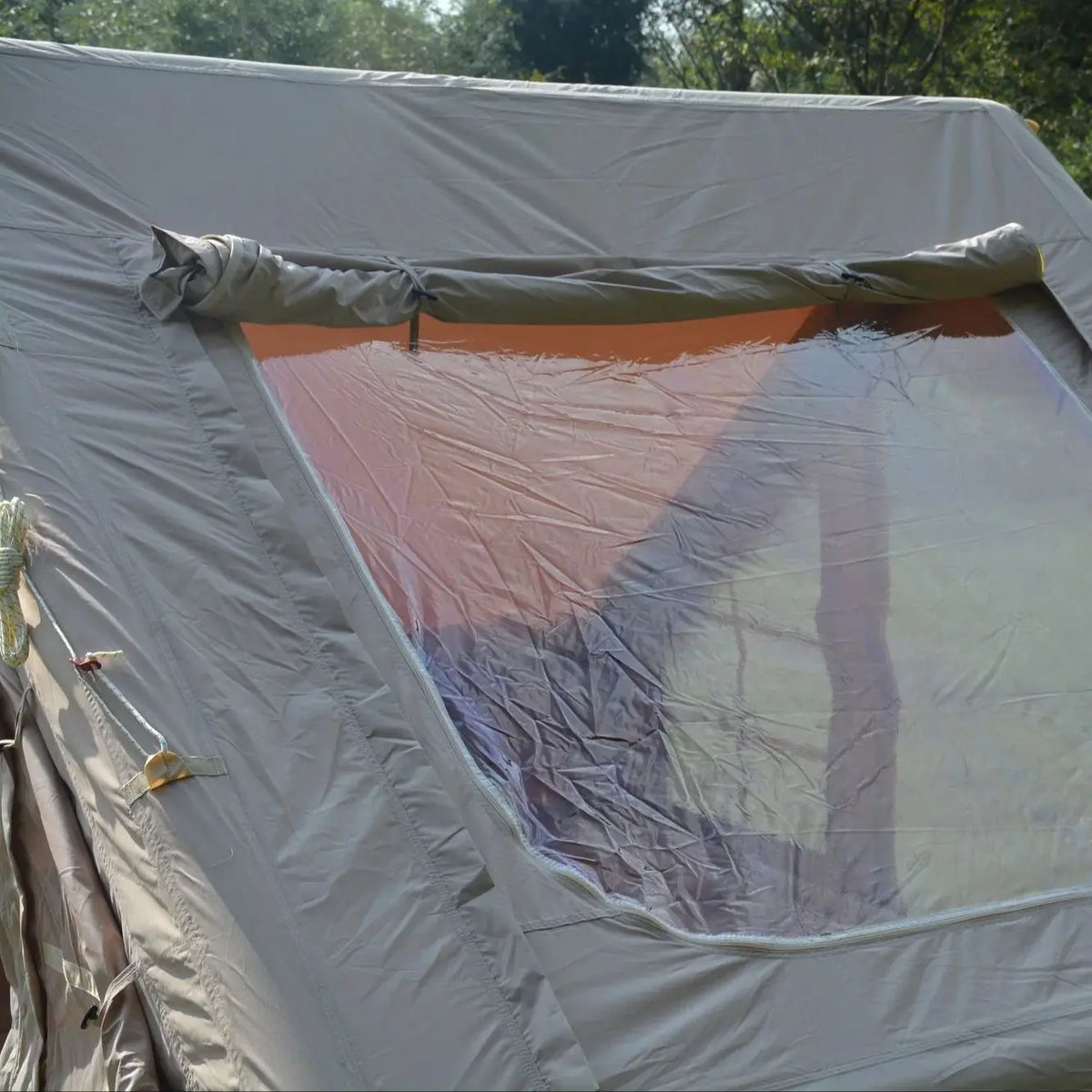 Upoznajte Veliki Napuhani Šator za Kampiranje s Dimnjakom za Četiri do Šest — svestran napuhani sklonište dizajnirano za obiteljska putovanja, grupne izlete i ugodne okupljanja u dvorištu. Ovaj prostrani šator udobno smješta 4 do 6 osoba i ima dimnjak za sigurnu toplinu i kuhanje hladnim večerima. Napuhajte i postavite ga za otprilike pet minuta kako biste imali više vremena za uživanje na otvorenom, bez borbe s teškim metalnim štapovima. Izrađen od izdržljivog poliestera s bež vanjštinom i 300D osjećajem pamuka elastične tkanine, spaja udobnost, toplinu i otpornost za avanture od kampiranja automobilom do vikenda na festivalima. Dizajniran kao vrtno sunčano sklonište i prostrano kamp prostor, ovaj veliki napuhani šator pruža fleksibilan prostor, jednostavno postavljanje i pouzdano sklonište za vašu ekipu.