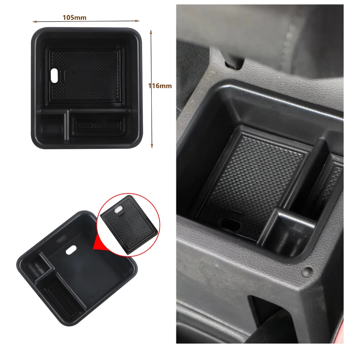 Transformirajte unutrašnjost vašeg Volkswagen T-Crossa s namjenskim ABS organizatorom koji se savršeno uklapa u odjeljak za odlaganje naslona za ruke. Izrađen od izdržljive ABS plastike i s neklizajućom gumenom podlogom, ovaj pladanj drži svakodnevne potrepštine na dohvat ruke dok sprječava pomicanje predmeta tijekom vožnje. To je izravna zamjena za tvornički odjeljak za odlaganje naslona za ruke i brzo se instalira, tako da možete uživati u čišćem, organiziranijem kabini za nekoliko minuta. Proizvedeno u ISO 9001 postrojenju kako bi se osigurala visoka kvaliteta, ovaj dodatak dodaje praktičan prostor bez povećanja volumena—i silikonska podloga pruža dodatno prianjanje i zaštitu za vaše male predmete.