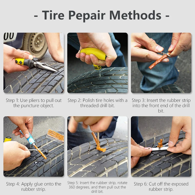 - Praktična popravka na cesti: Koristite čepove za probijanje i gumene trake za zatvaranje manjih probijanja i nastavite s vožnjom dok ne dobijete profesionalnu uslugu.