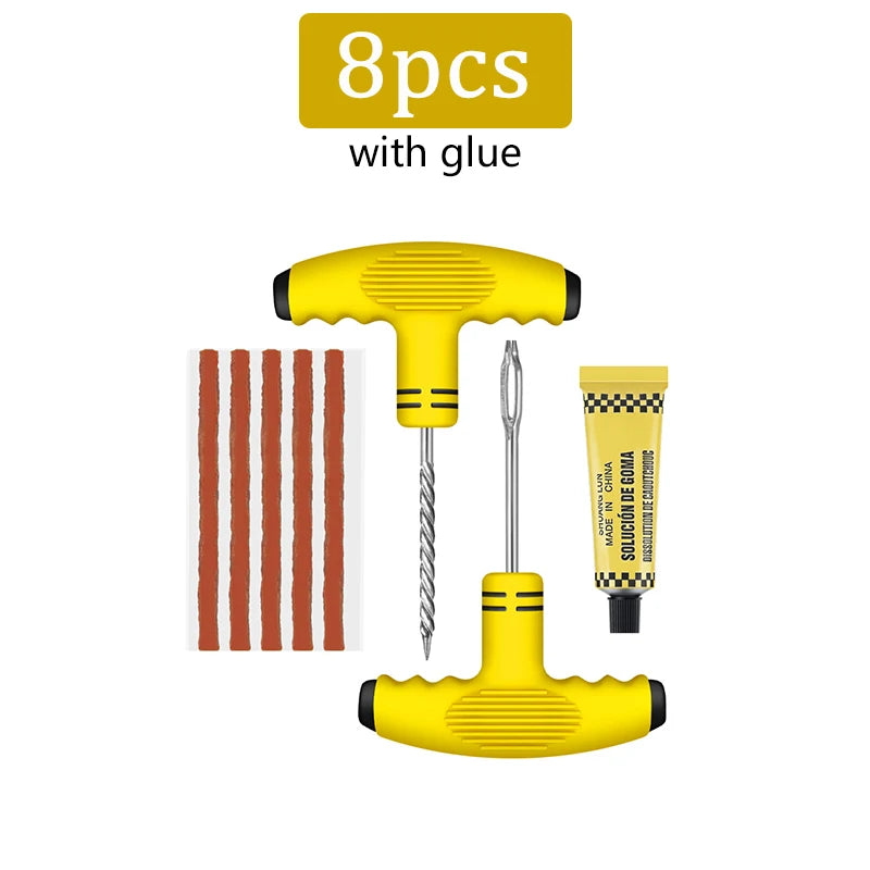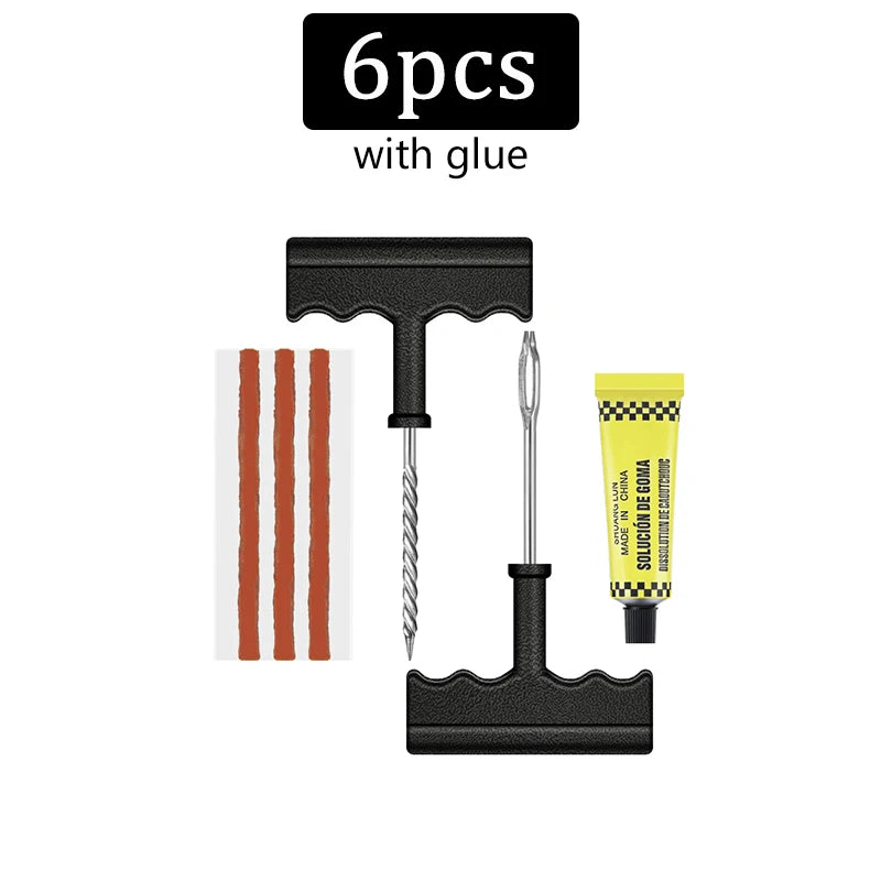 Set alata za popravak guma s gumenim trakama i ljepilom, čepovima za probijanje, metalni set za održavanje je kompaktno, izdržljivo rješenje za hitne popravke guma. Izrađen od čvrstih metalnih komponenti, ovaj set za održavanje uključuje gumene trake, čepove za probijanje i ljepilo kako bi se pomoglo u zatvaranju manjih probijanja i brzo vas vratilo na cestu. Potječe iz Kine, set je dizajniran da bude prenosiv i lako se pohranjuje u vašem automobilu za mir na dugim putovanjima ili svakodnevnim vožnjama.