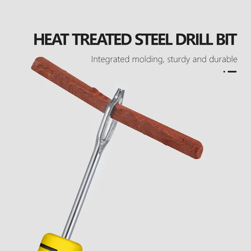 Bilo da naiđete na čavao, vijak ili manje probijanje, ovaj set pruža praktične dodatke koji će vam pomoći u privremenom popravku na cesti, dajući vam vremena da dođete do servisne stanice. Uključeno ljepilo pomaže osigurati čepove i gumene trake, poboljšavajući pouzdanost kada vam je potrebna brza, trenutna rješenja.