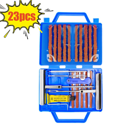 Alat za popravak guma s gumiranim trakama i ljepilom, čepovi za probijanje, metalni set za održavanje