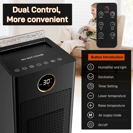 Ostanite topli i udobni s MVPower keramičkim grijačem ventilatora 2000W/1500W, svestranim grijačem i ovlaživačem dizajniranim za dnevne boravke, kupaonice, spavaće sobe i urede. S daljinskim upravljačem možete prilagoditi temperaturu, postaviti timer od 0–12 sati i prebacivati se između 2000W, 1500W ili samo način rada ventilatora iz svog kreveta ili radnog stola. Ugrađeni termostat održava vašu ciljanu temperaturu, pomažući vam da grijete učinkovito i štedite energiju.