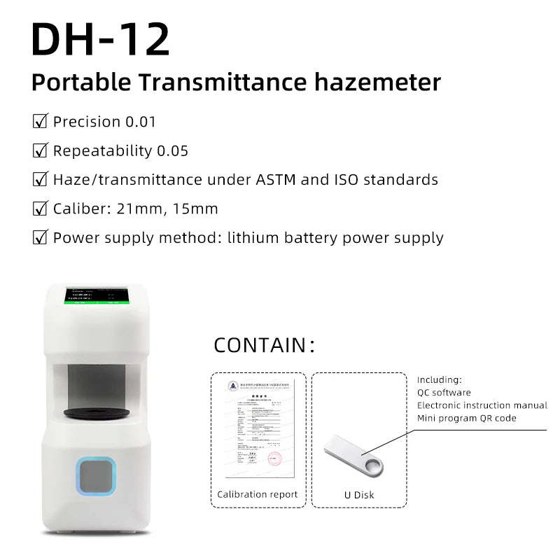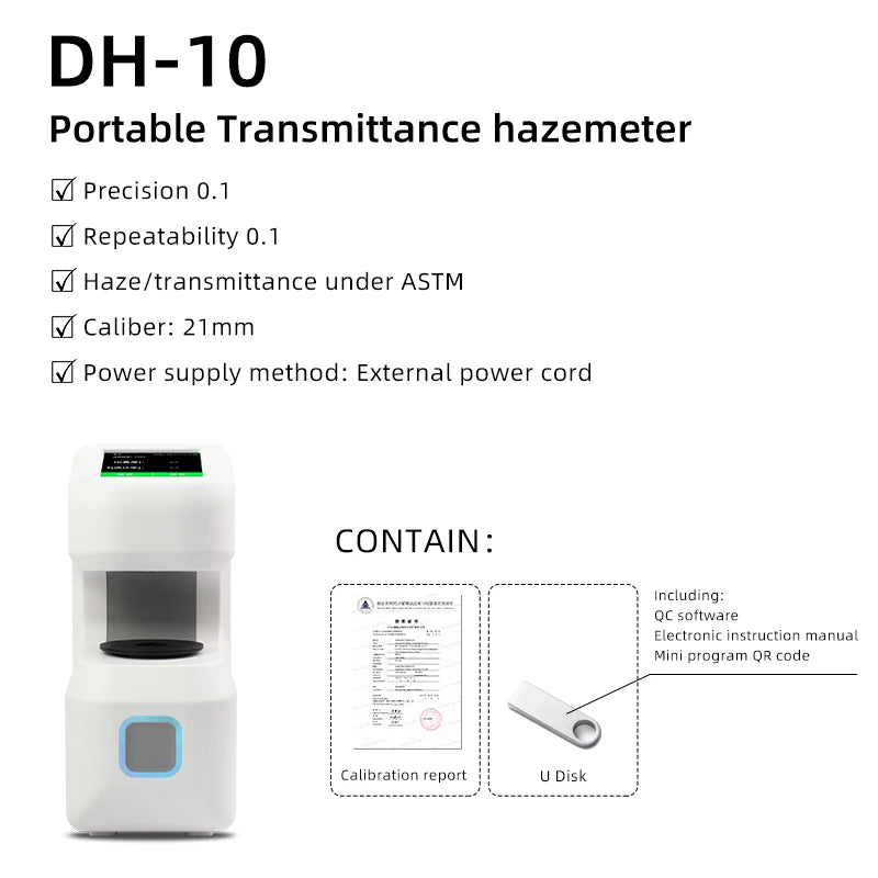 - Točni rezultati u skladu sa standardima: ispunjava GB/T 2410, ASTM D1003/1044, ISO 13468/14782, JIS K 7105/7361/7136 i povezane standarde za maglu i prolaznost.