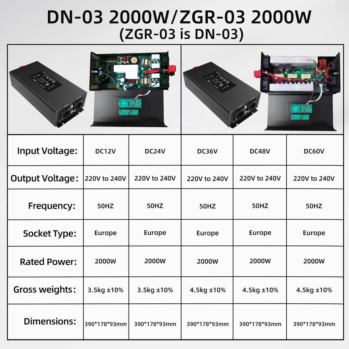 DATOUBOSS DN-03 auto inverter je vaš pouzdani izvor energije kada ste u pokretu. Ovaj čisti sinusni inverter pretvara 12–60V DC iz vašeg vozila ili baterijskog sustava u čistu 220–240V AC, tako da svakodnevna kućna elektronika radi glatko gdje god vam zatreba energija—na putovanjima, na kampiranju ili u prostorima izvan mreže. S kontinuiranom snagom od 2000W i vršnom snagom od 4000W, pouzdano upravlja laptopima, televizorima, malim kuhinjskim aparatima i drugim osnovnim potrebama, smanjujući potrebu za stajanjem vašeg vozila ili oslanjanjem na nepouzdane izvore energije.