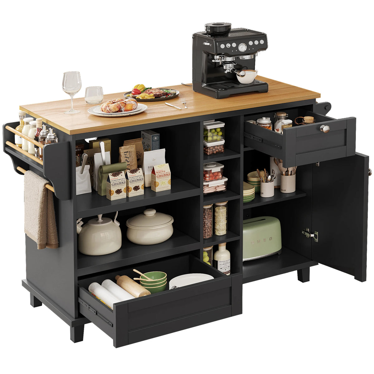 Višenamjensko skladište održava vašu kuhinju organiziranom. Ova mobilna ormarić nudi dva skladišna područja s ladicama i vratima, plus otvorenu policu. Unutarnji razdjelnik ima tri podesive razine za smještaj predmeta različitih visina, dok bočne strane uključuju višeslojne drvene police za praktično skladištenje pribora i osnovnih potrepština.